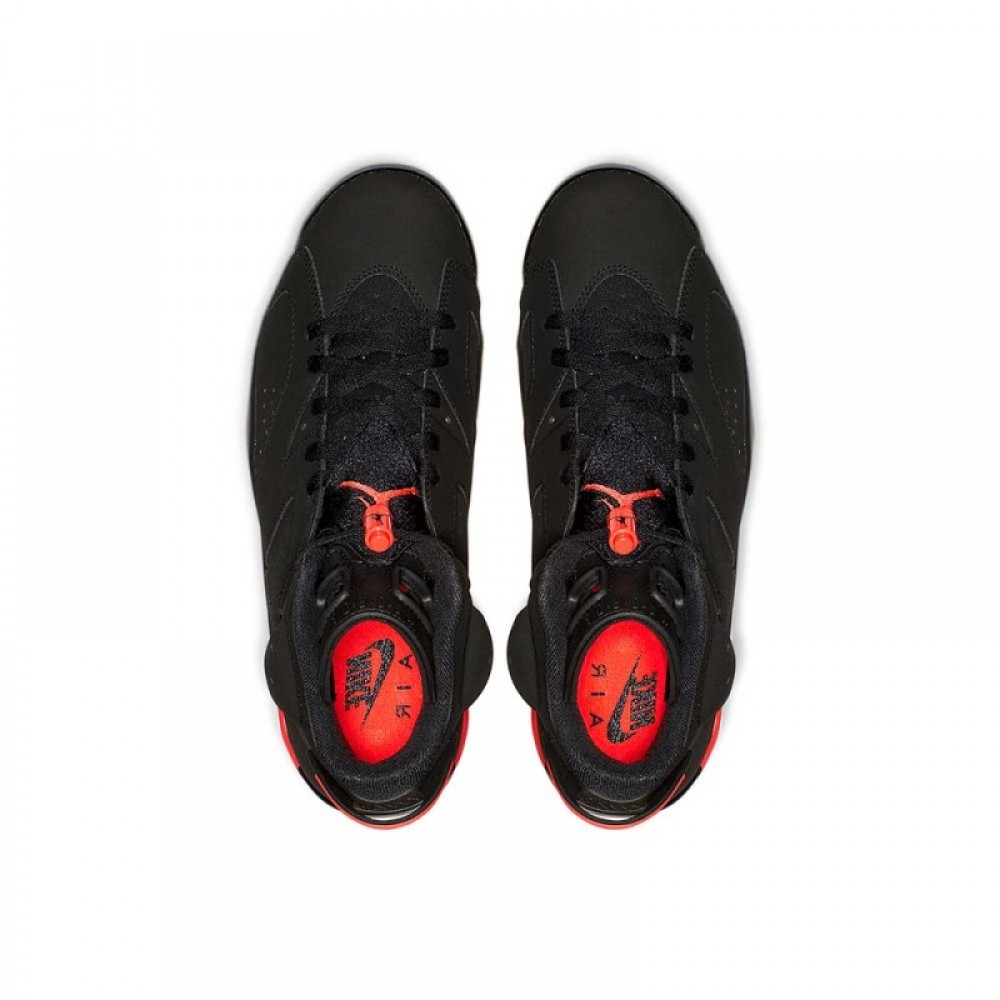 The 2019 edition of the Air Jordan 6 Retro ‘Infrared’ is true to the original colorway, which Michael Jordan wore when he captured his first NBA title. Dressed primarily in black nubuck with a reflective 3M layer underneath, the mid-top features Infrared accents on the midsole, heel tab and lace lock. Nike Air branding adorns the heel and sockliner, an OG detail last seen on the 2000 retro.