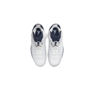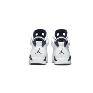 The Air Jordan 6 “Midnight Navy” is a non-original colorway of Michael Jordan’s sixth signature shoe that originally debuted in 2000 and was brought back in early 2022. The “Midnight Navy” was once part of Jordan Brand’s “Retro+” collection, a series of non-original colorways from the late ‘90s and early 2000s that put a new “lifestyle” spin on classic Air Jordan models, like the Air Jordan 6. Interestingly, the “Midnight Navy” colorway of the vintage basketball shoe is styled similarly to the model’s “White Infrared,” “Sport Blue,” and original “Maroon” looks. The entire upper, including the perforated panels on the sides, the perforated collar, and overlays, appear in white tumbled leather. A Midnight Navy Jumpman is embroidered onto the white nylon lace overlay. Additional Midnight Navy accenting comes into play on the lace toggle with white Jumpman branding, on the tongue, and on the spoiler on the heel. A navy blue Jumpman is stitched onto the heel above white “Air” branding. Release date: March 2022