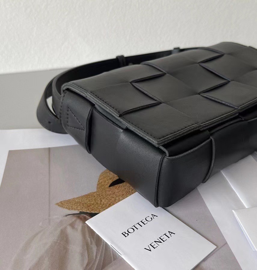 Bottega Veneta Cassett Bag In Black Intrecciato Lambskin