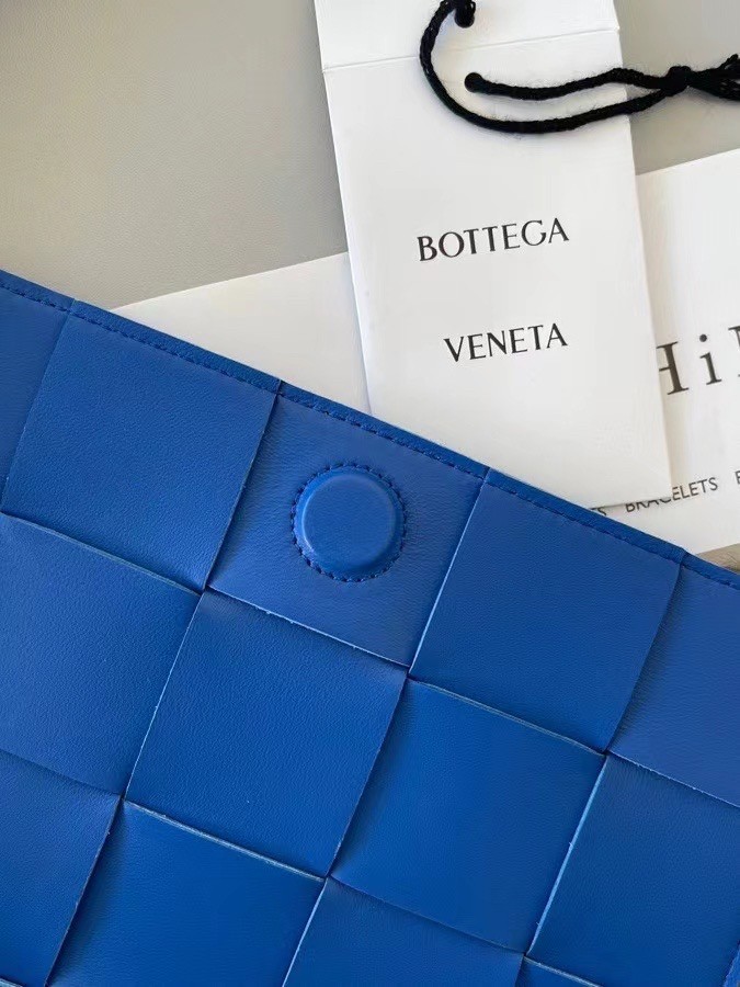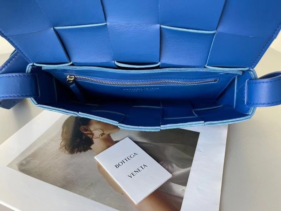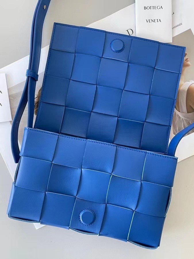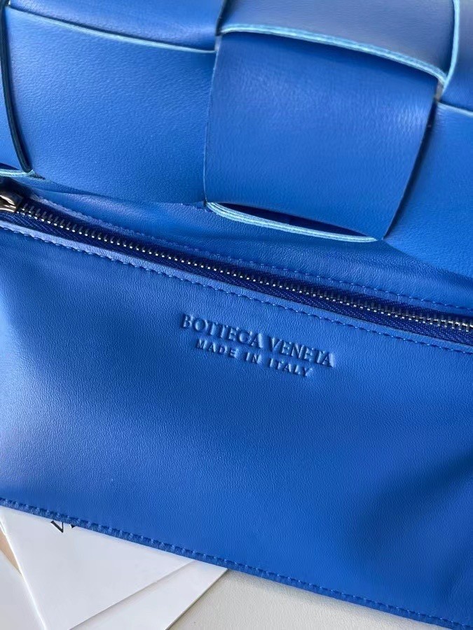 Bottega Veneta Cassett Bag In Blue Intrecciato Lambskin