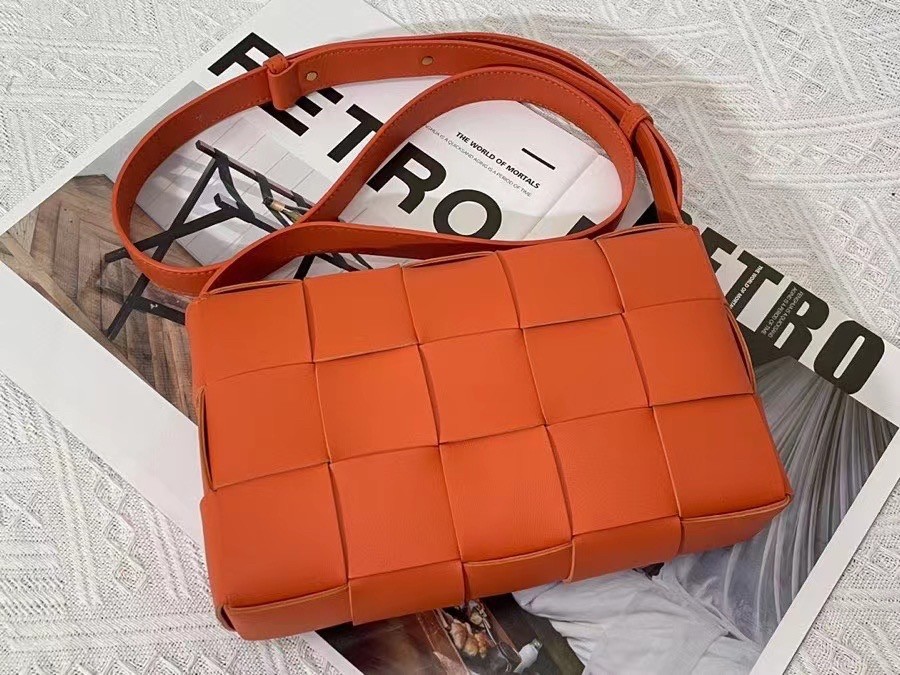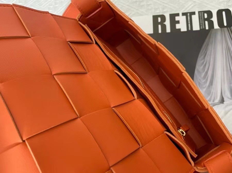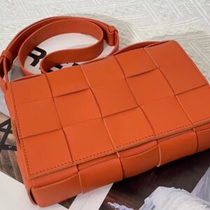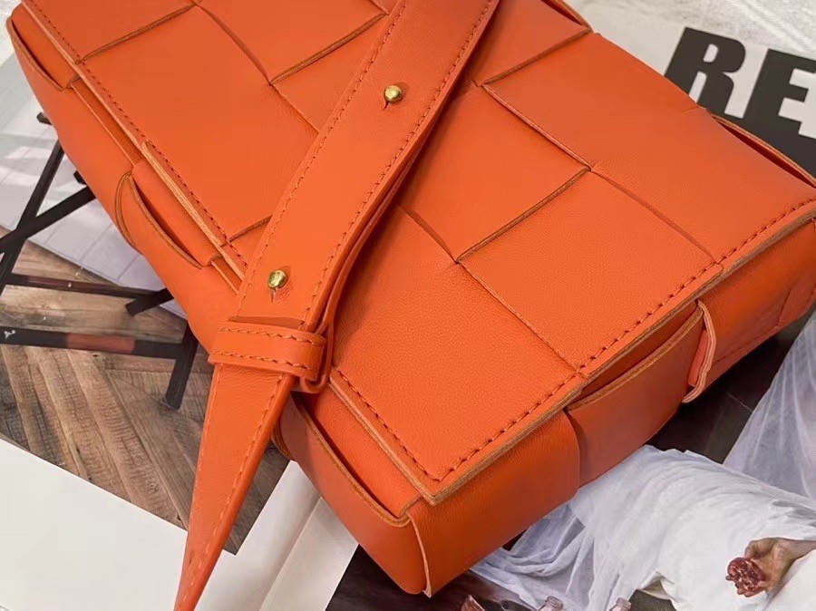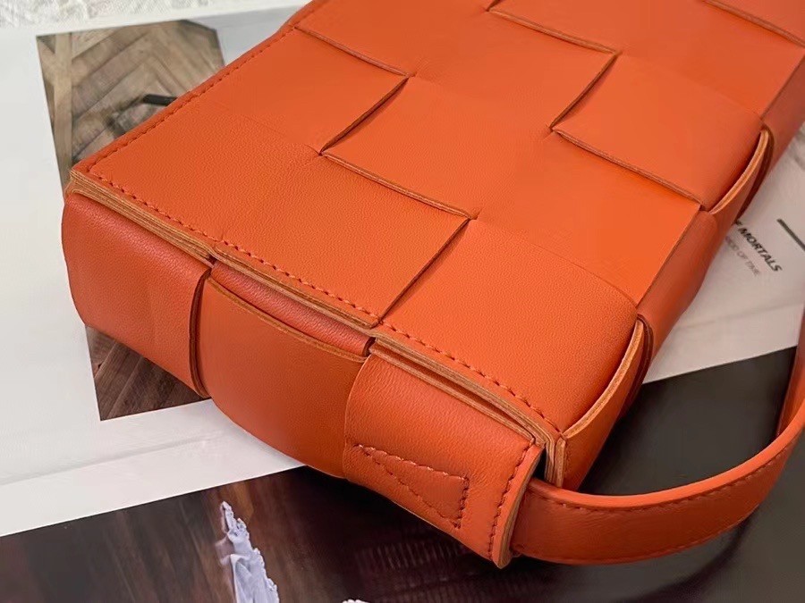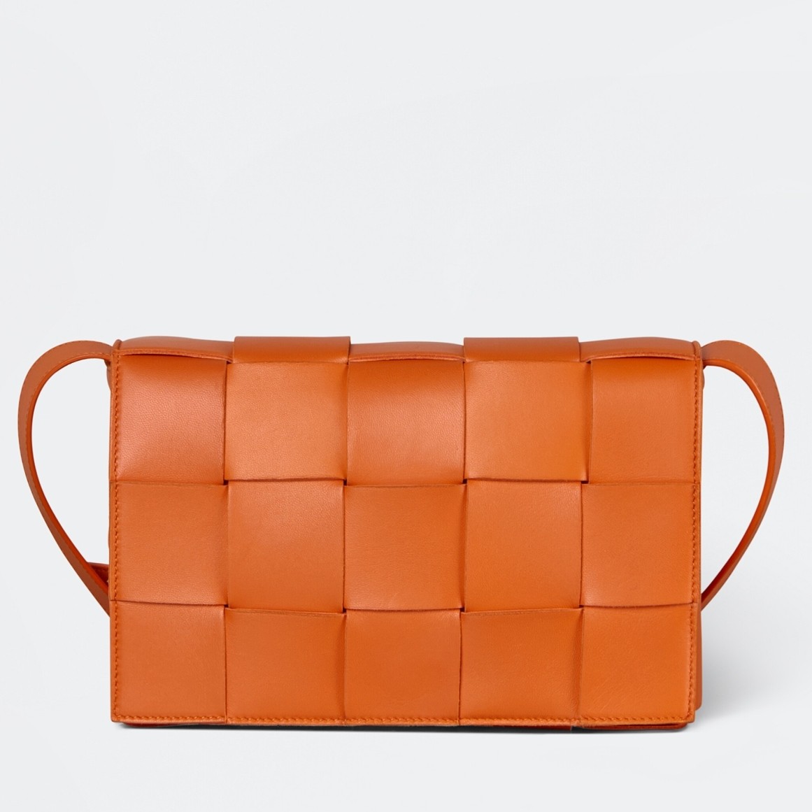 Bottega Veneta Cassett Bag In Orange Intrecciato Lambskin