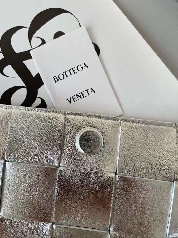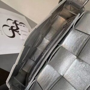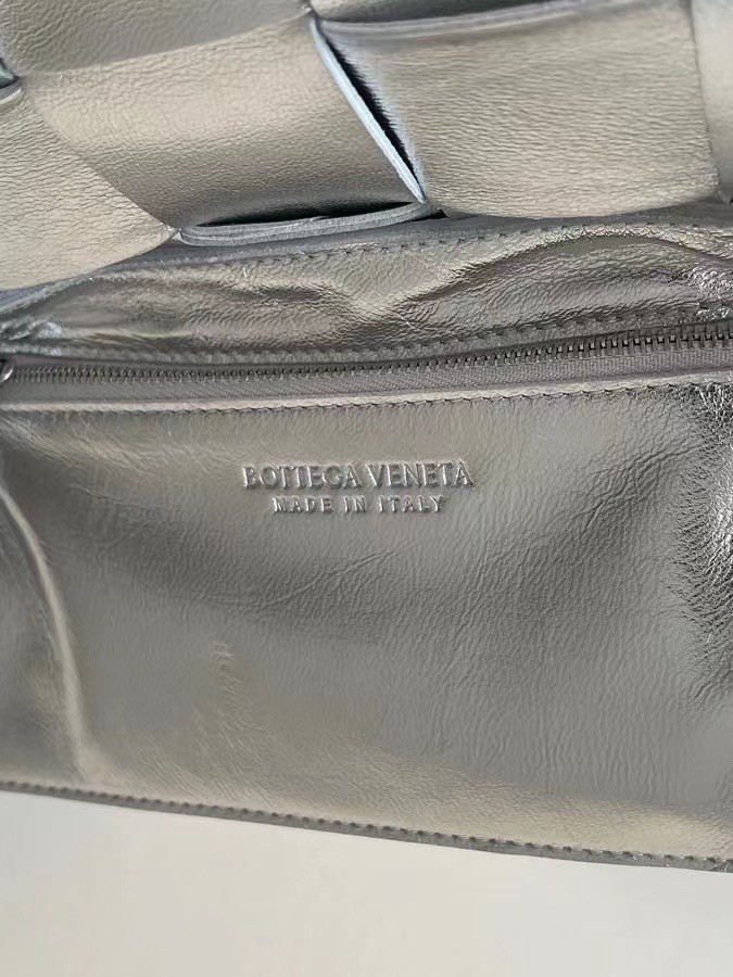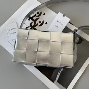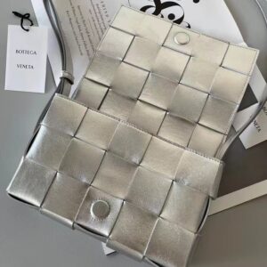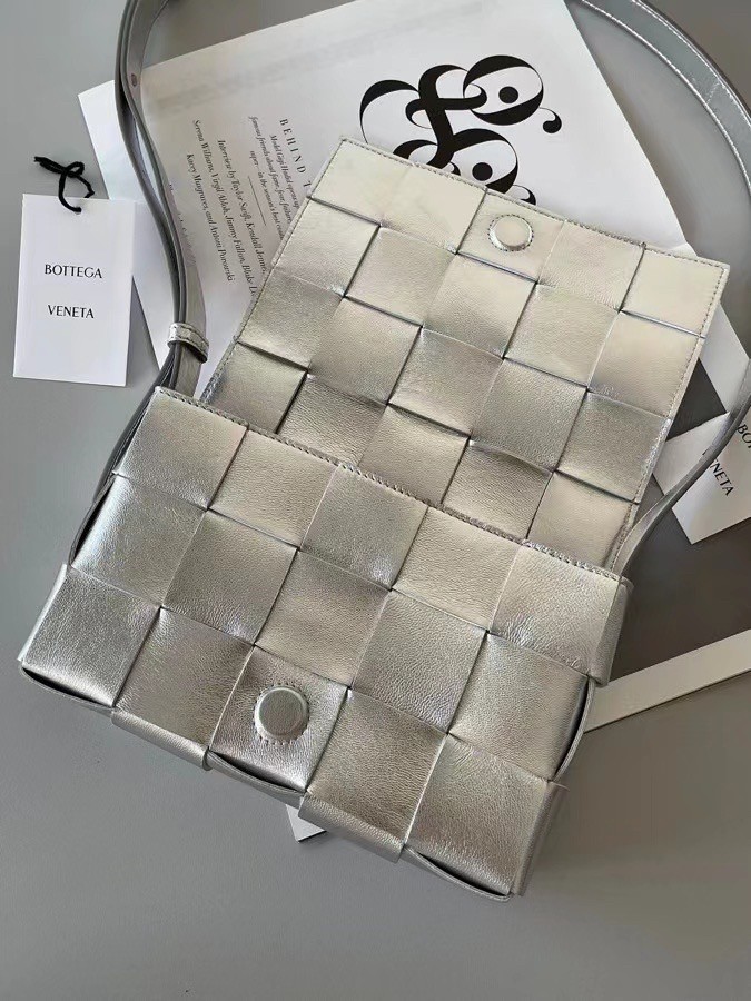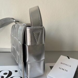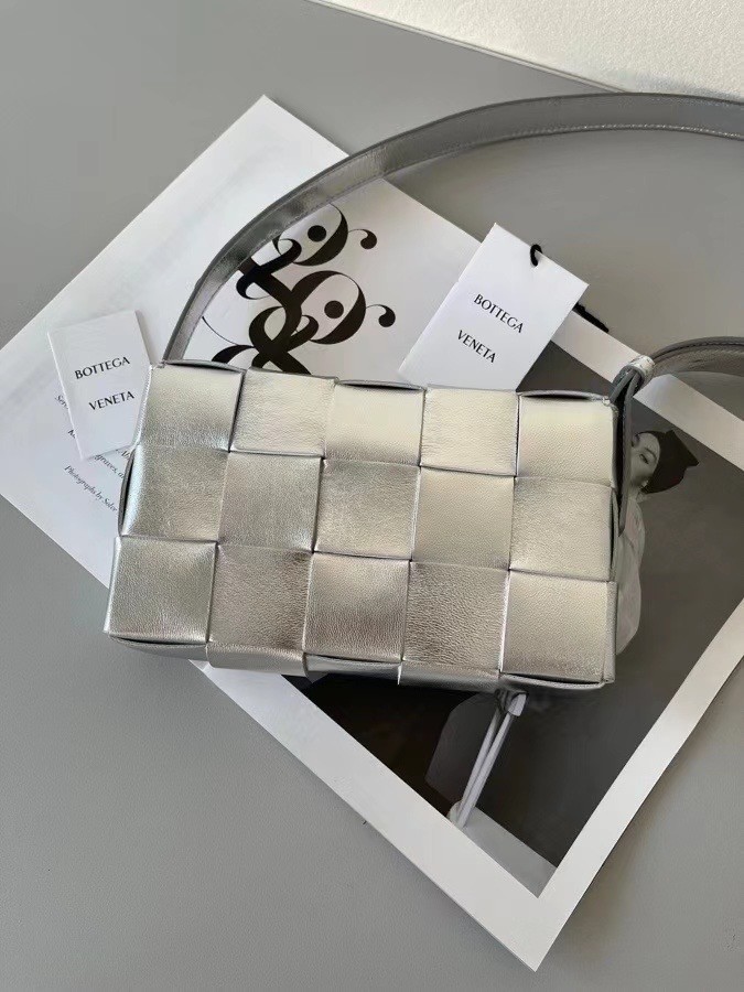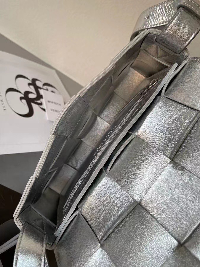 Bottega Veneta Cassett Bag In Silver Intrecciato Lambskin