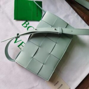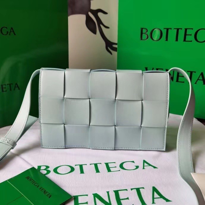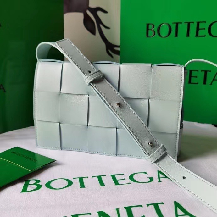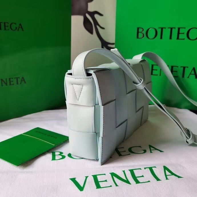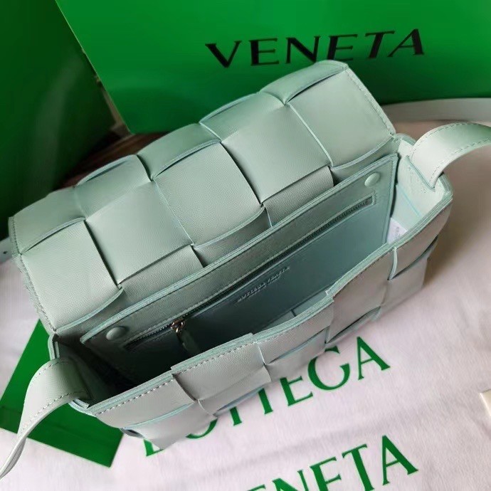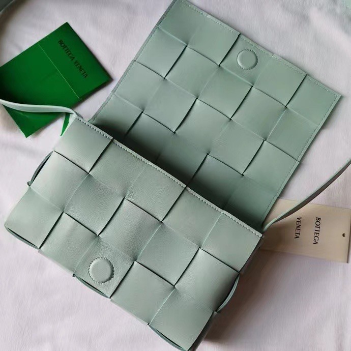 Bottega Veneta Cassett Bag In Teal Washed Intrecciato Lambskin