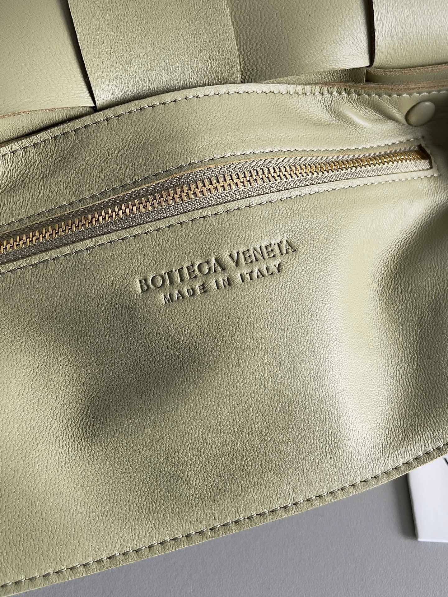 Bottega Veneta Cassett Bag In Travertine Intrecciato Lambskin