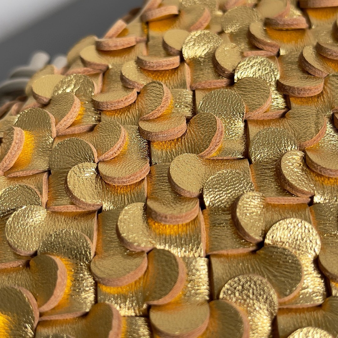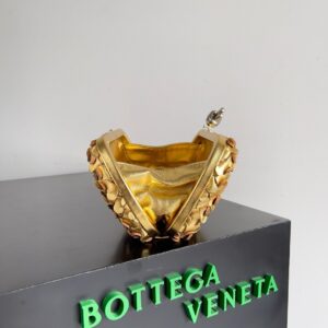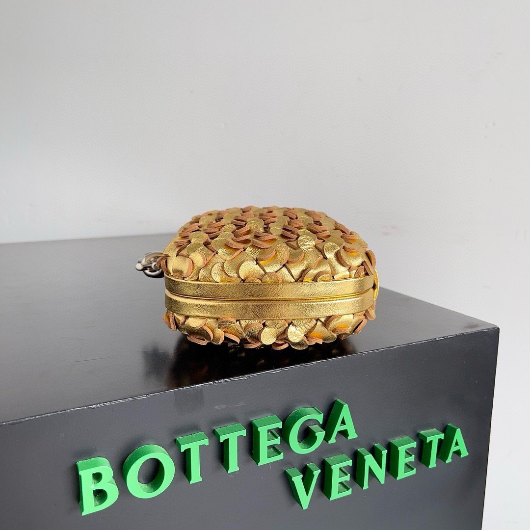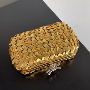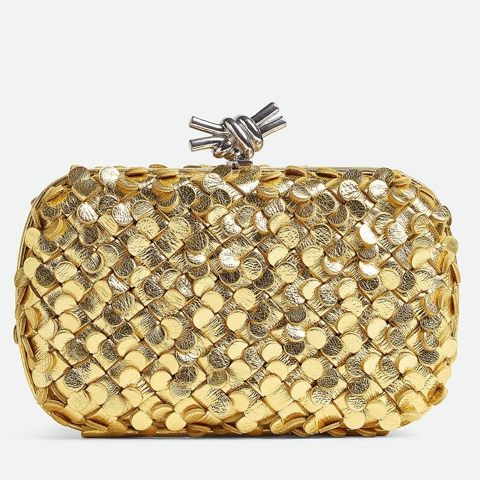 Bottega Veneta Knot Minaudiere Clutch in Gold Sequins Laminated Leather