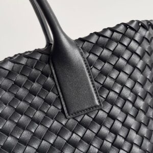 Bottega Veneta Medium Cabat Bag In Black Intrecciato Lambskin