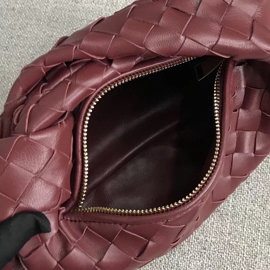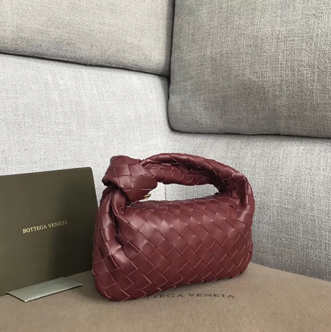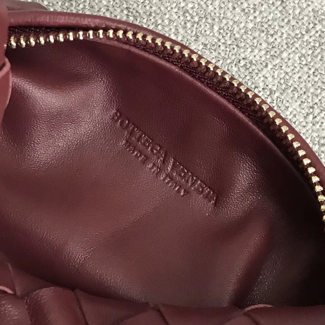 Bottega Veneta Mini BV Jodie Bag In Bordeaux Woven Leather