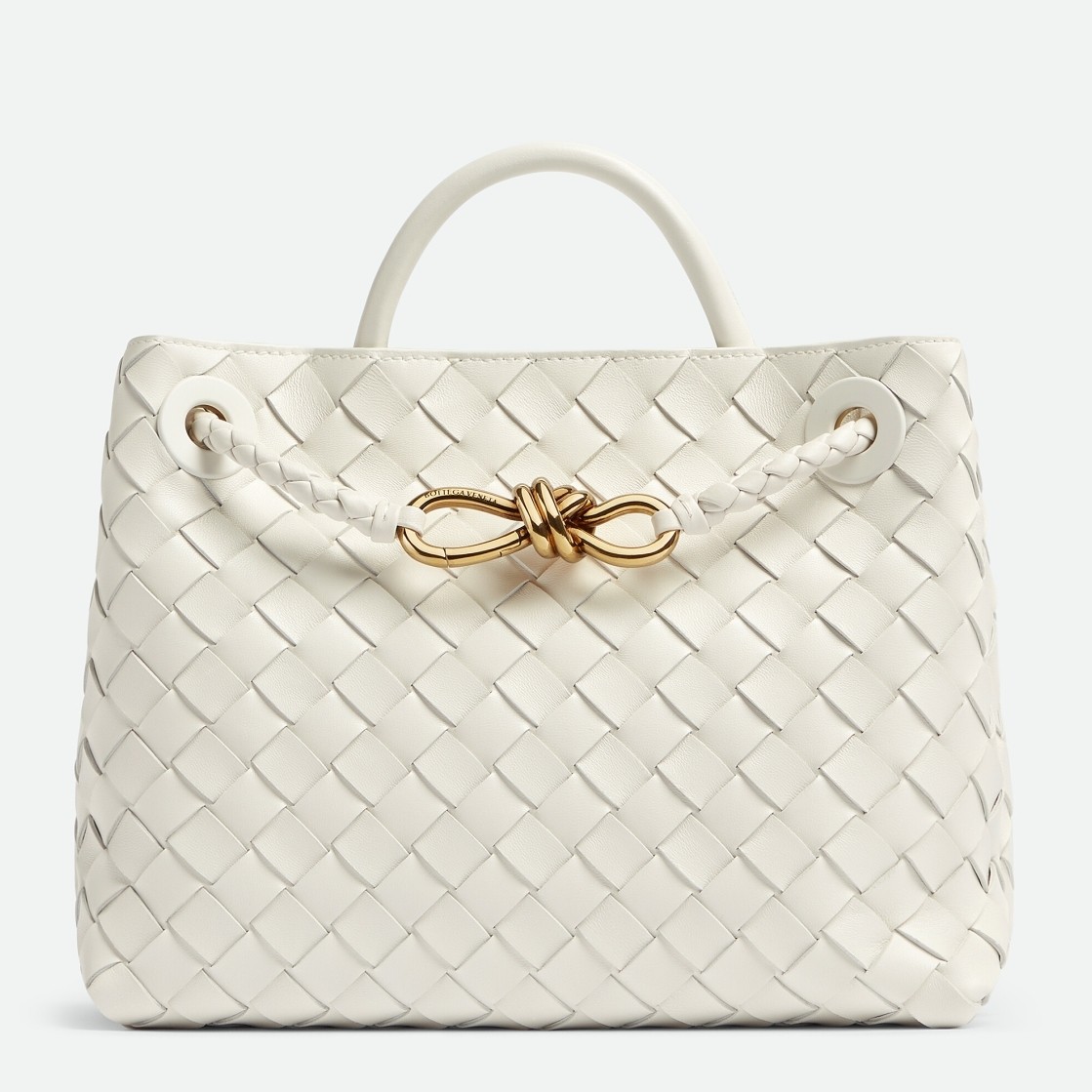 Bottega Veneta Small Andiamo Bag In White Intrecciato Lambskin