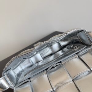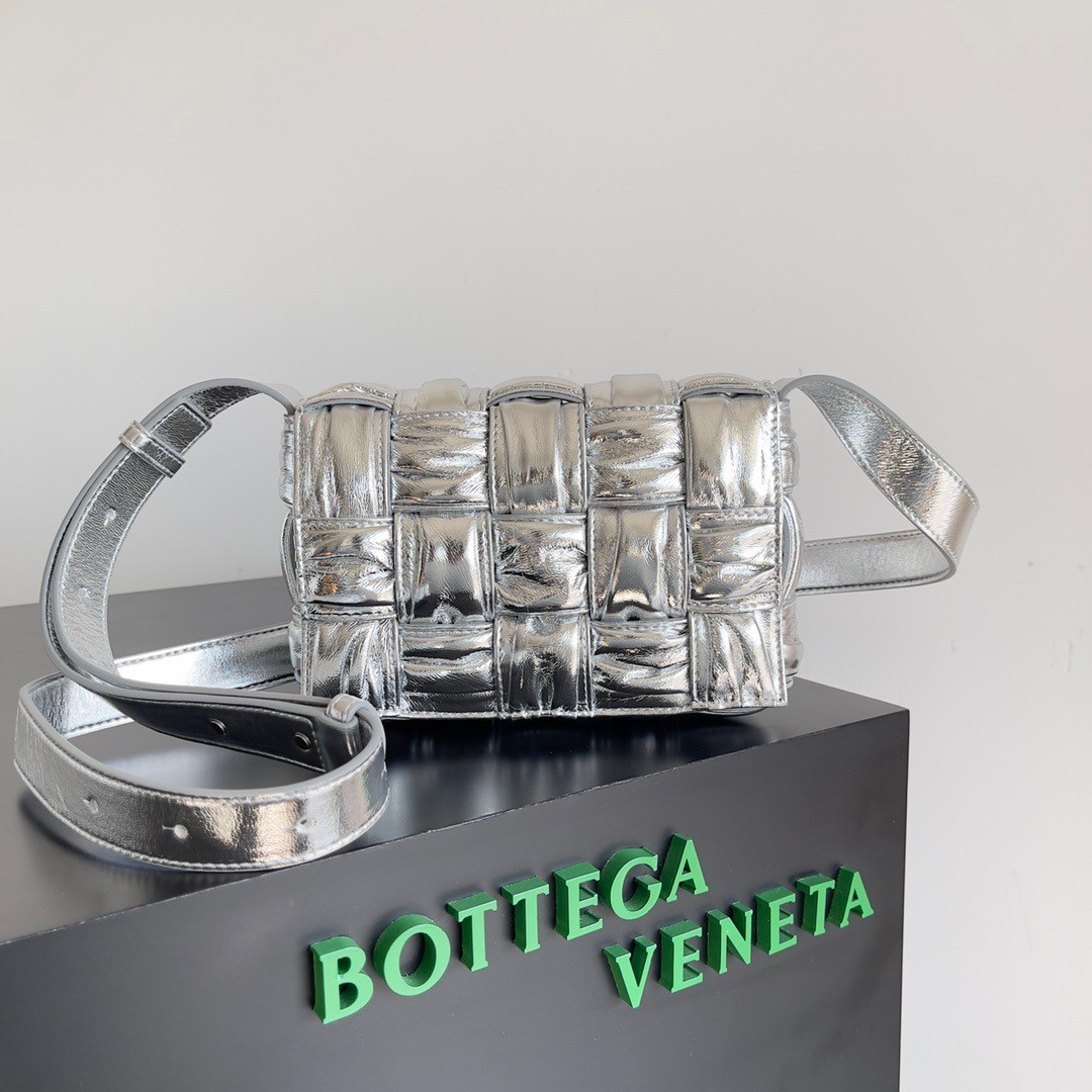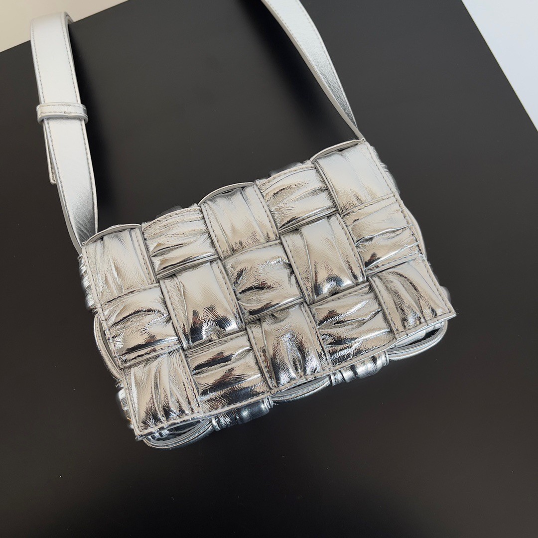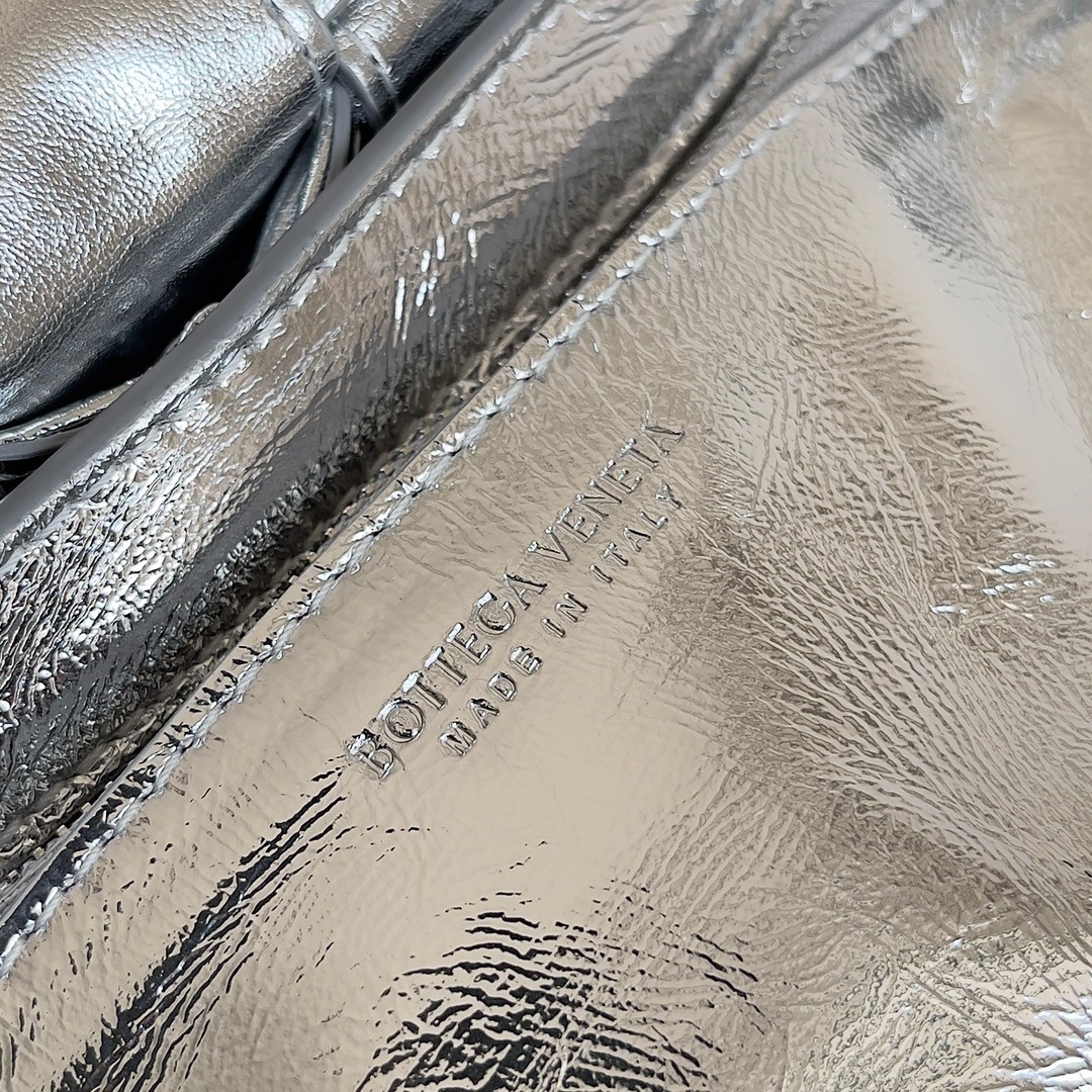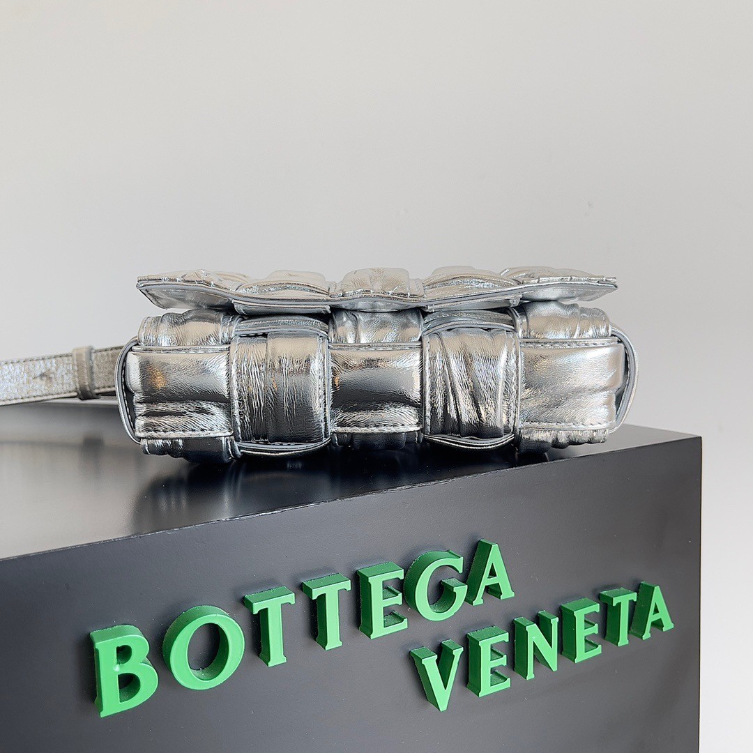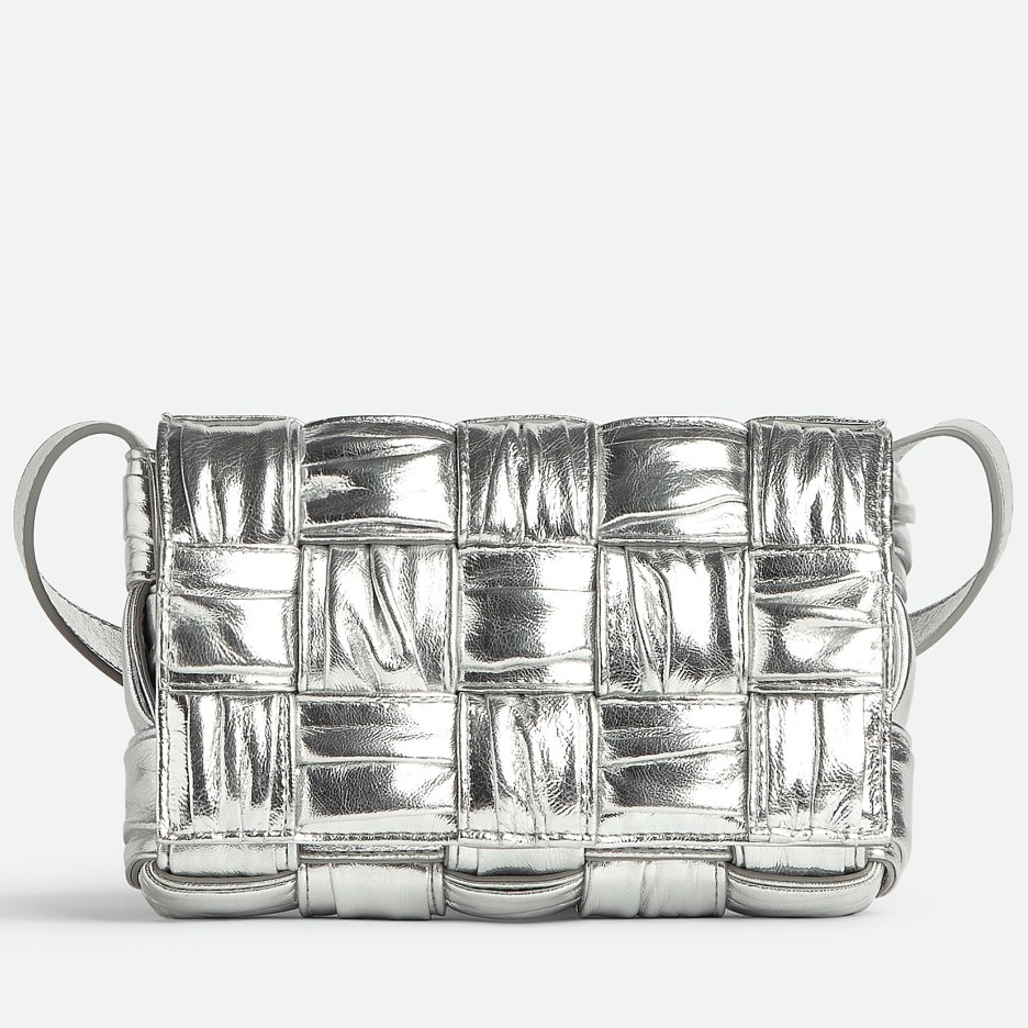 Bottega Veneta Small Cassette Bag In Silver Metallic Lambskin