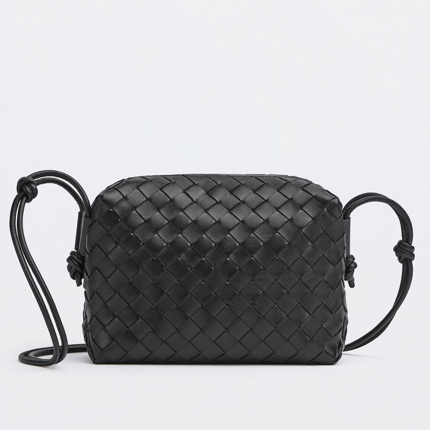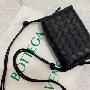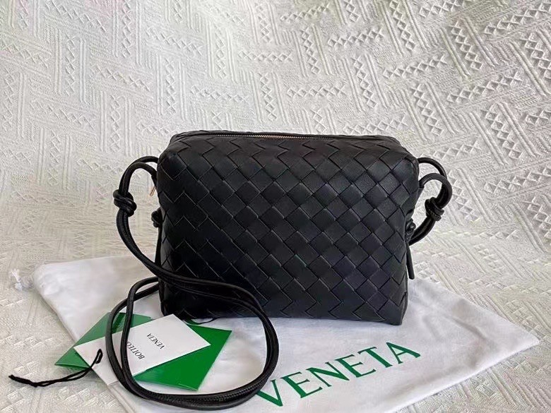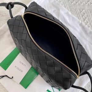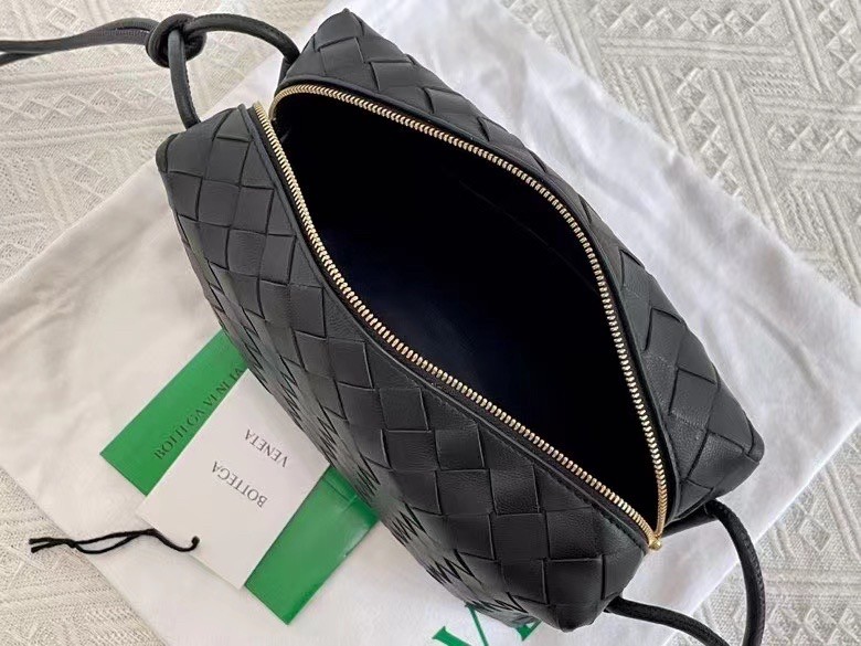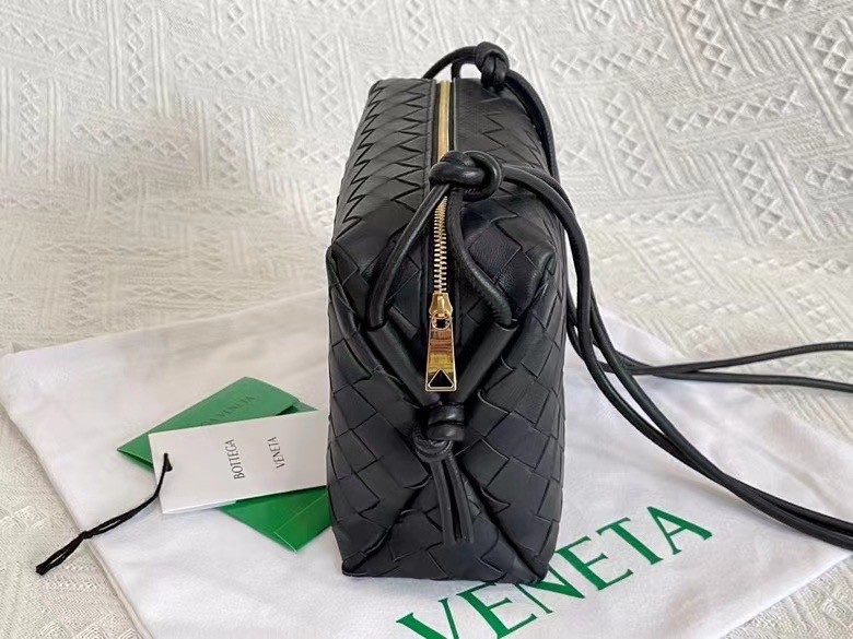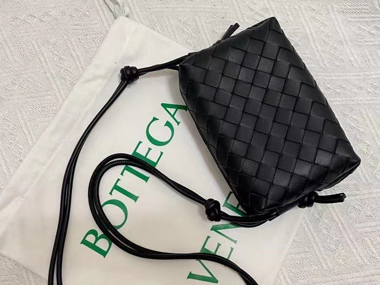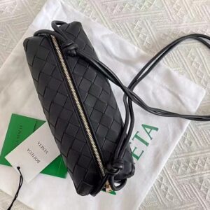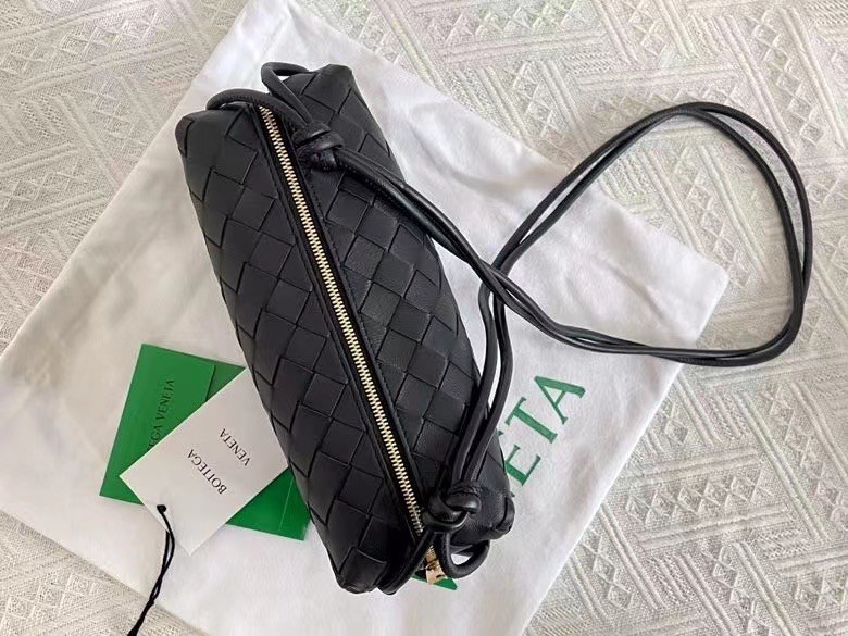 Bottega Veneta Small Loop Bag In Black Intrecciato Lambskin