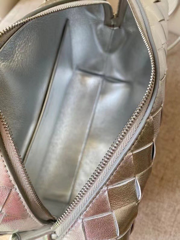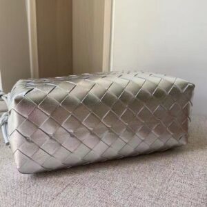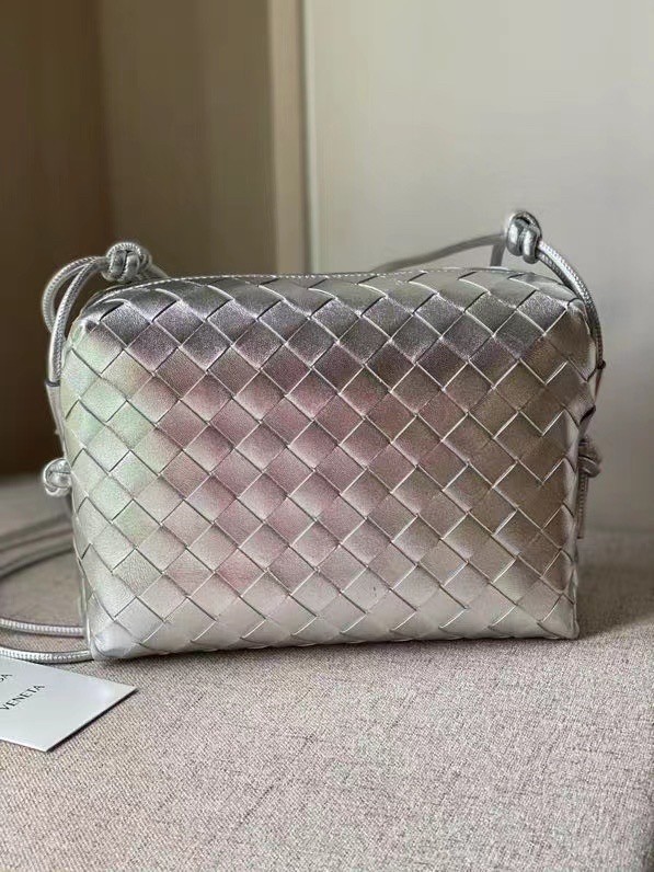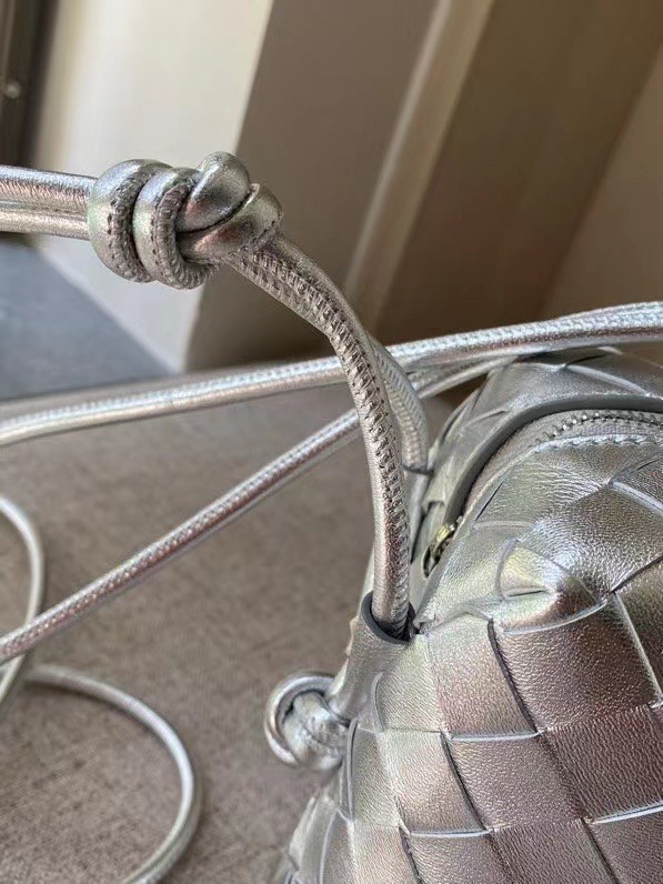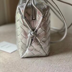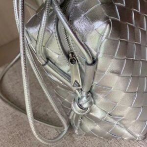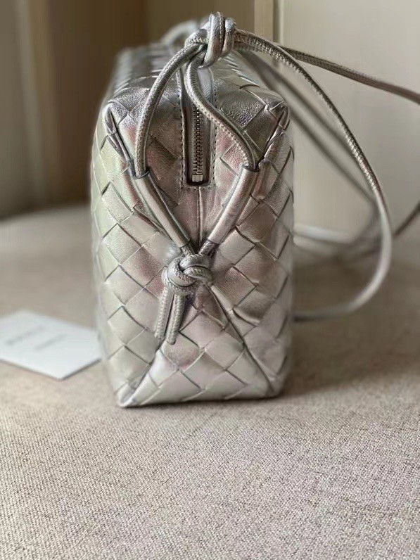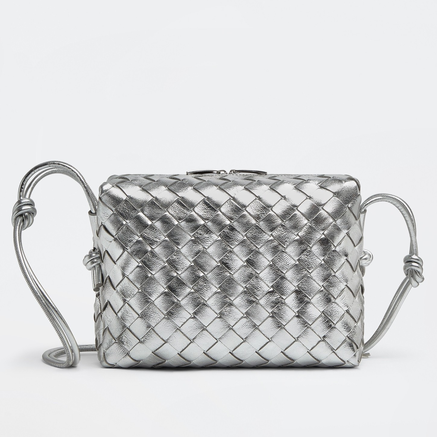 Bottega Veneta Small Loop Bag In Silver Intrecciato Lambskin