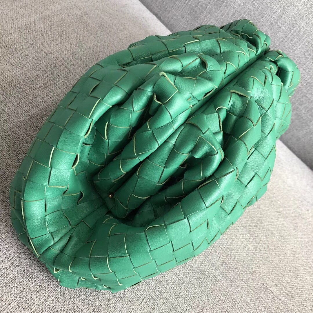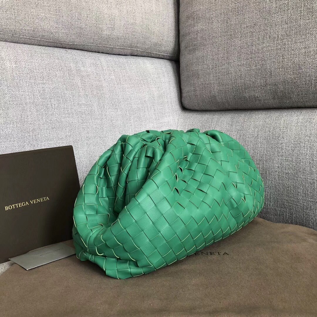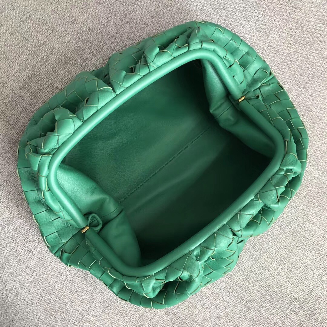 Bottega Veneta The Pouch Clutch In Green Intrecciato Leather