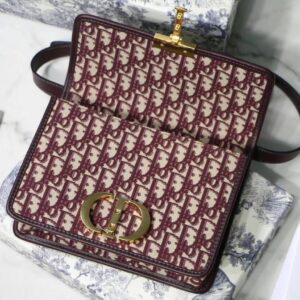 Dior 30 Montaigne Bag In Burgundy Oblique Jacquard Canvas
