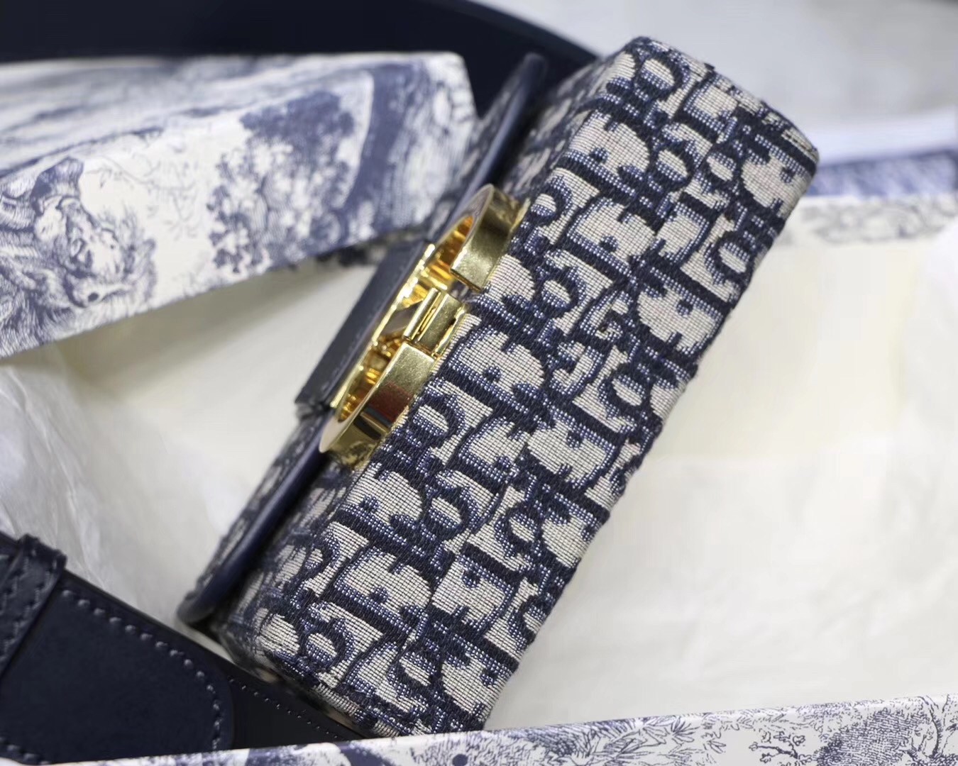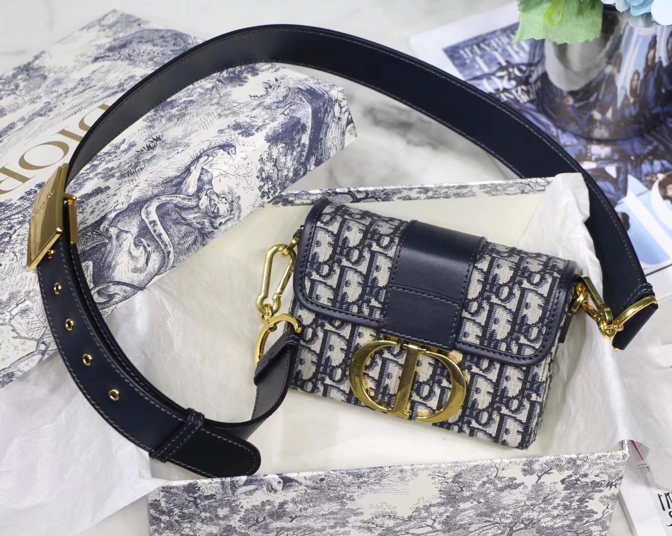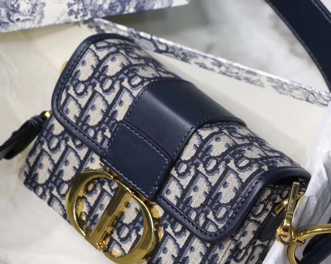 Dior 30 Montaigne Box Bag In Blue Oblique Canvas