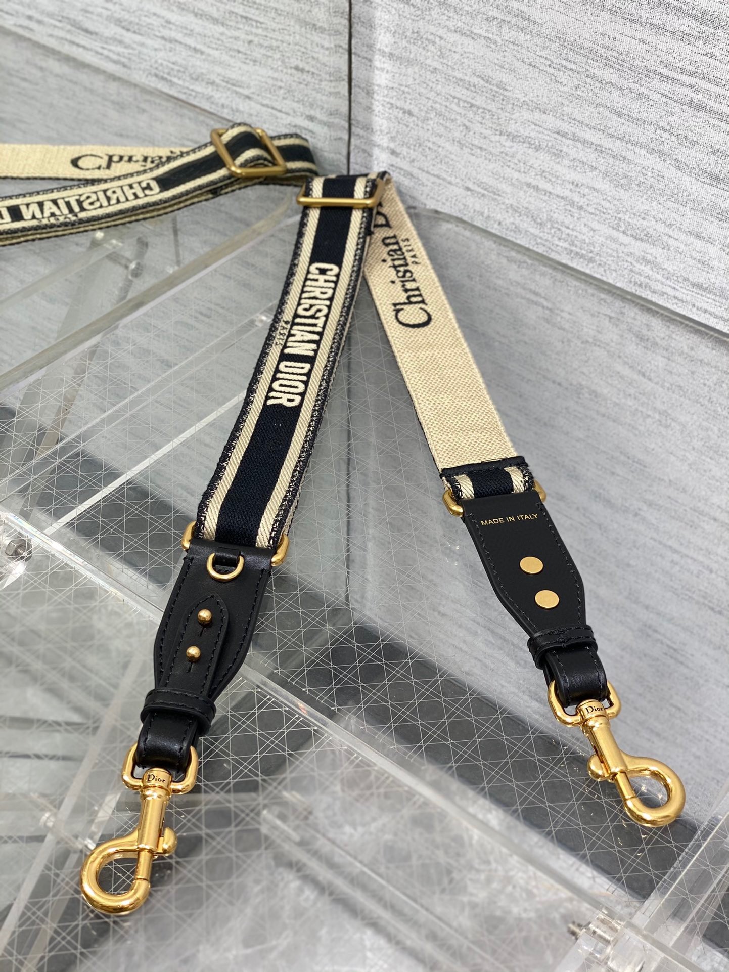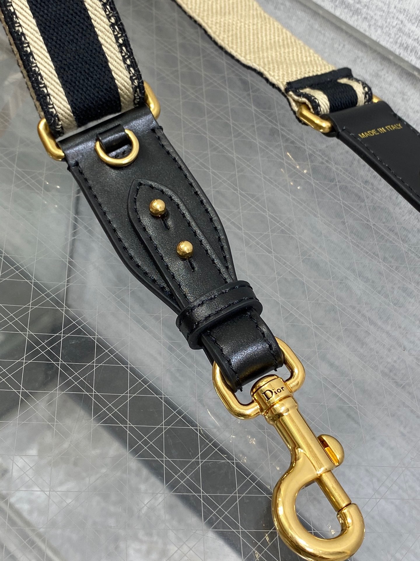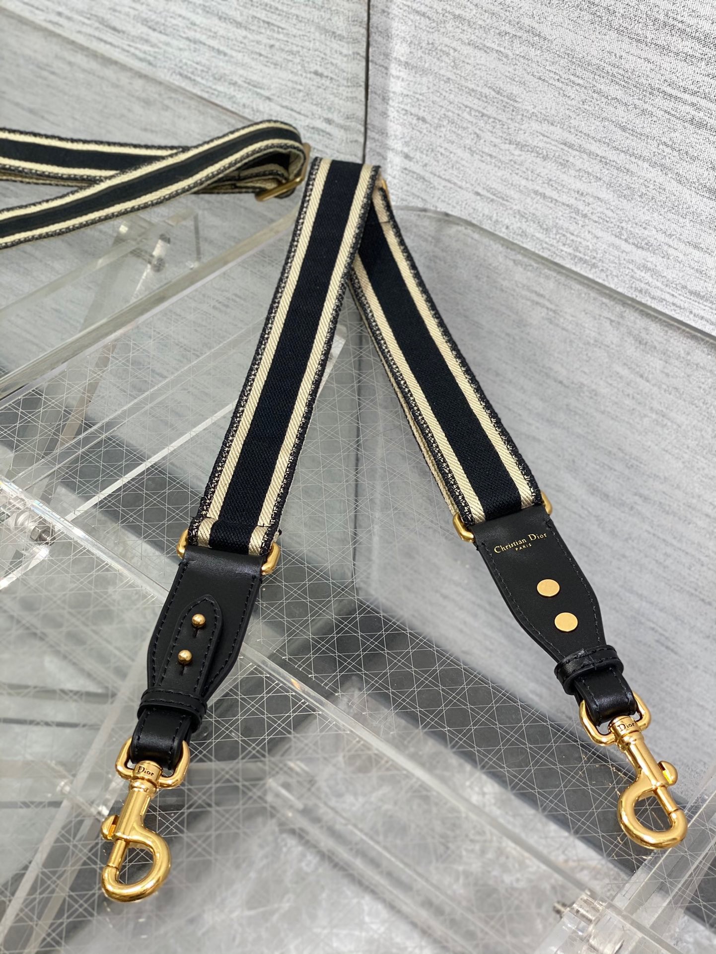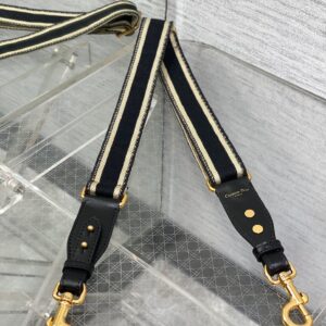 Dior Adjustable Shoulder Strap with Ring in Black Embroidery Canvas