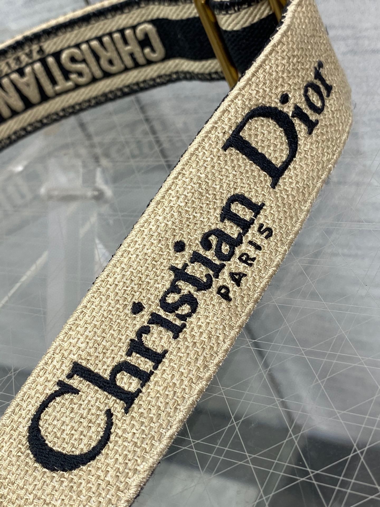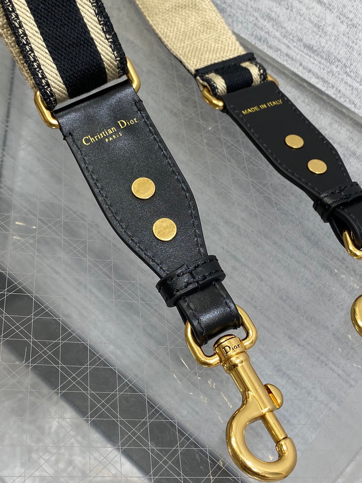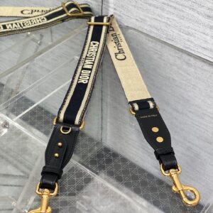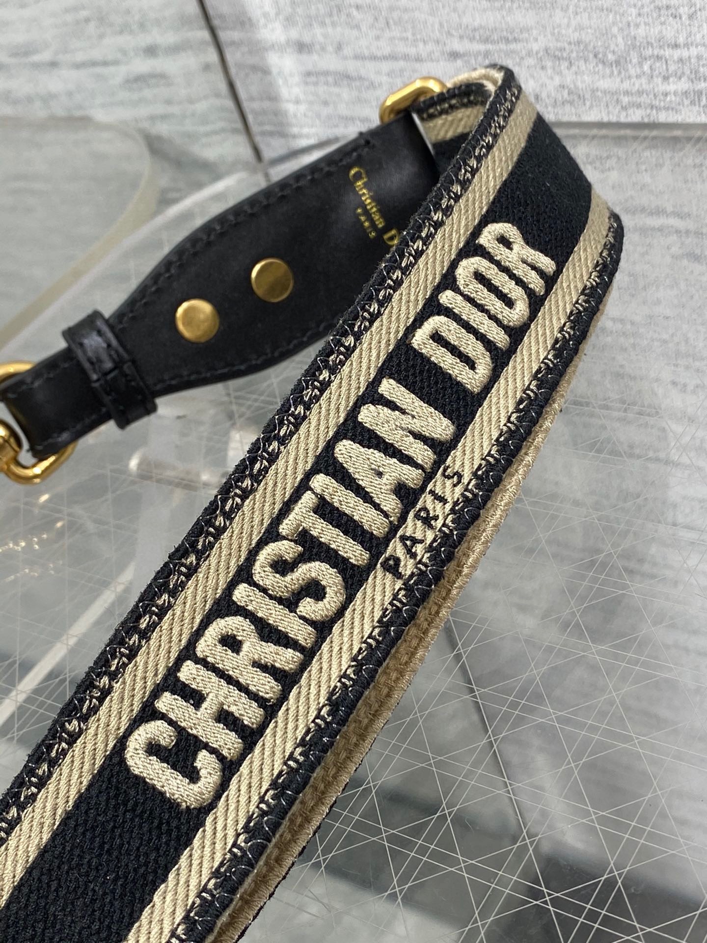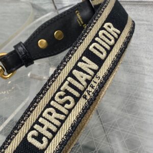 Dior Adjustable Shoulder Strap with Ring in Black Embroidery Canvas