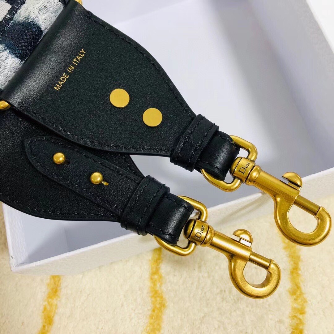 – Blue and white Tie & Dior embroidery with black calfskin
