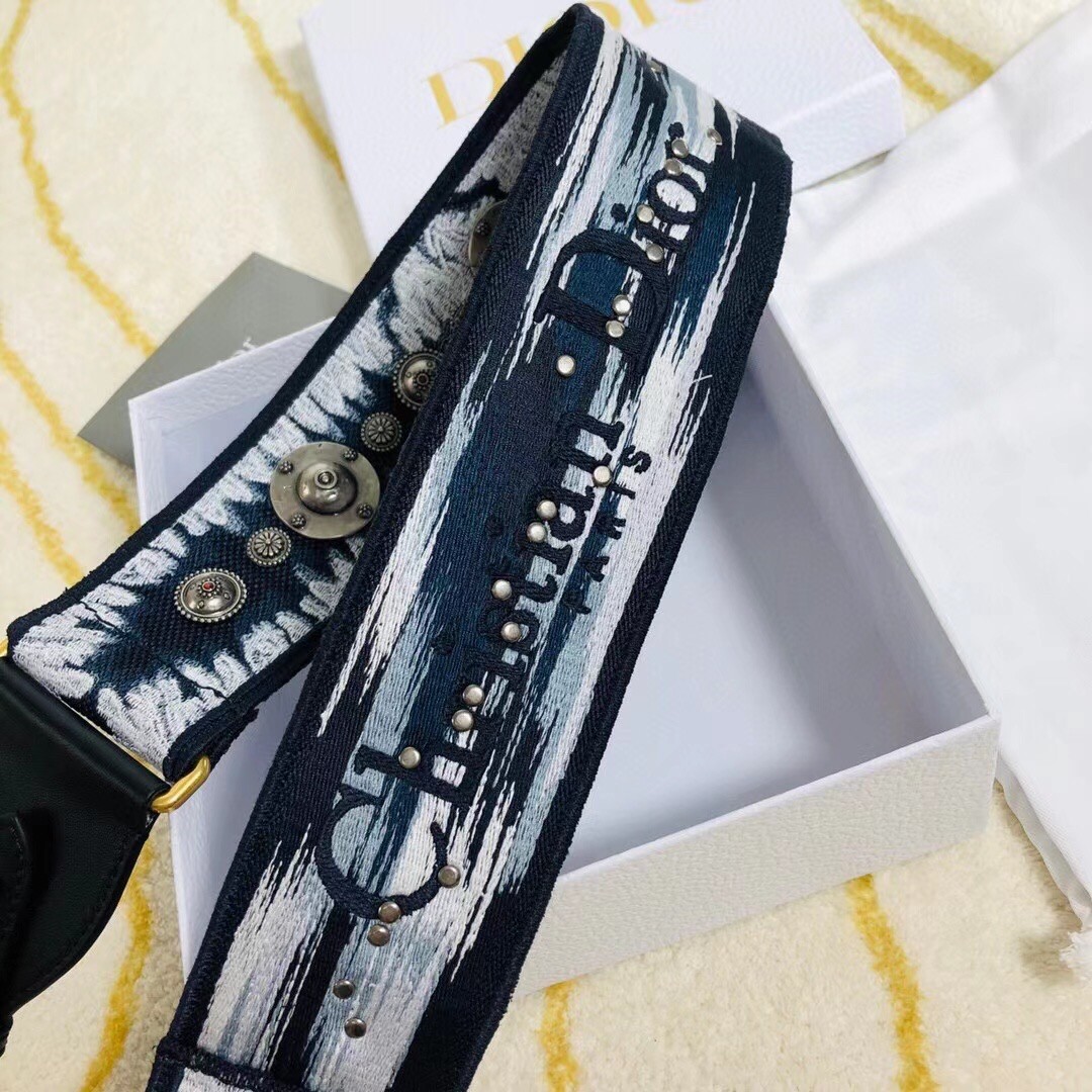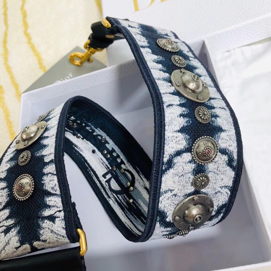 Dior Blue Multicolor Tie & Dior Embroidery Shoulder Strap