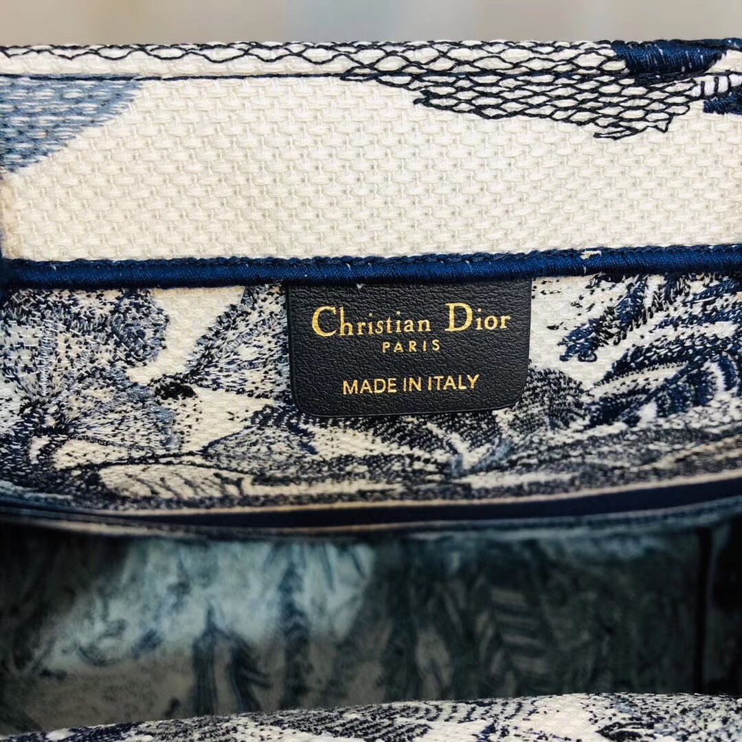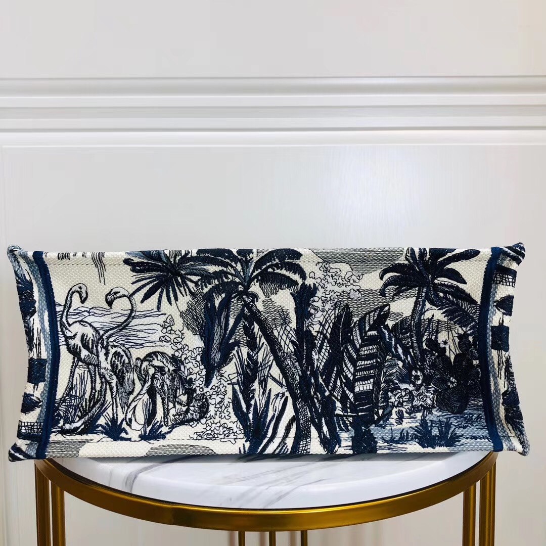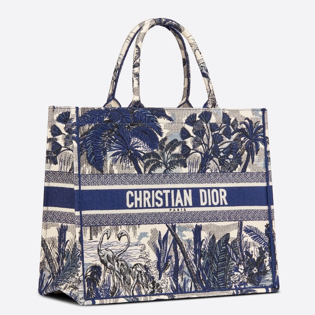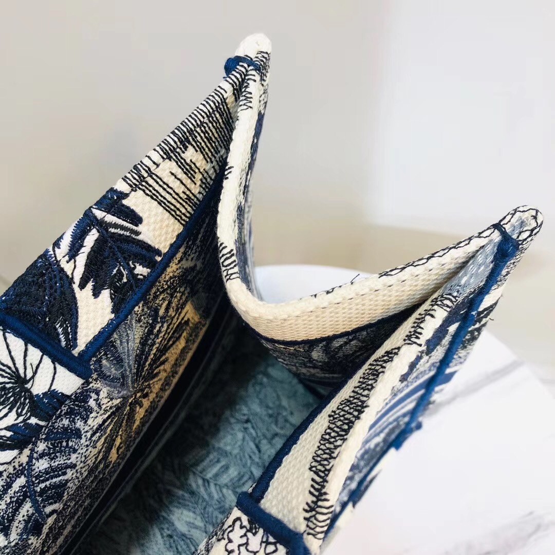 Dior Book Tote Bag In Blue Palm Tree Toile de Jouy Embroidery