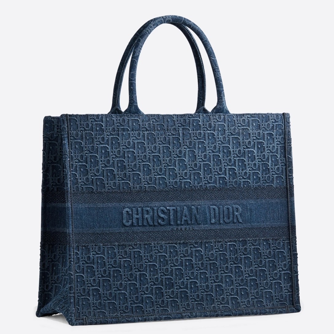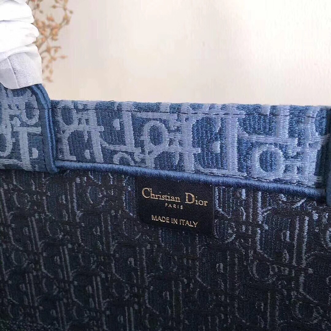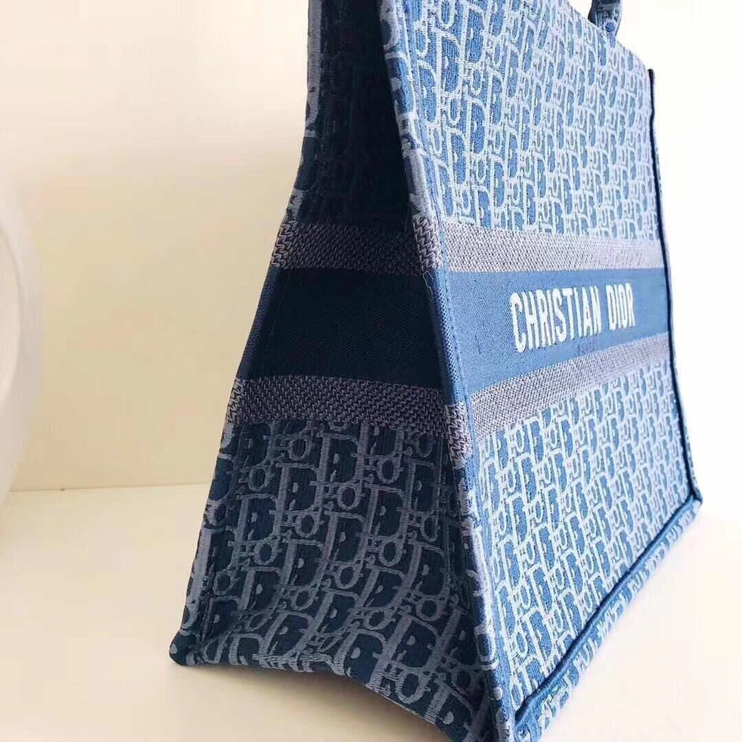 Dior Book Tote Bag In Denim Blue Oblique Canvas