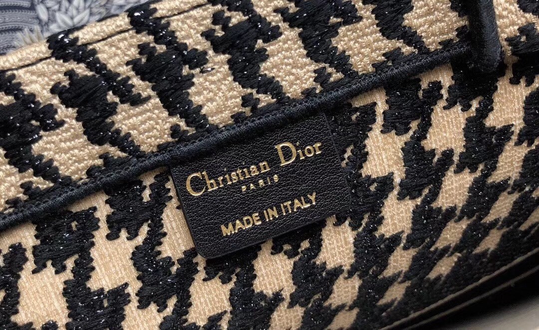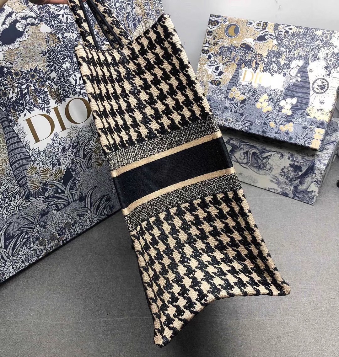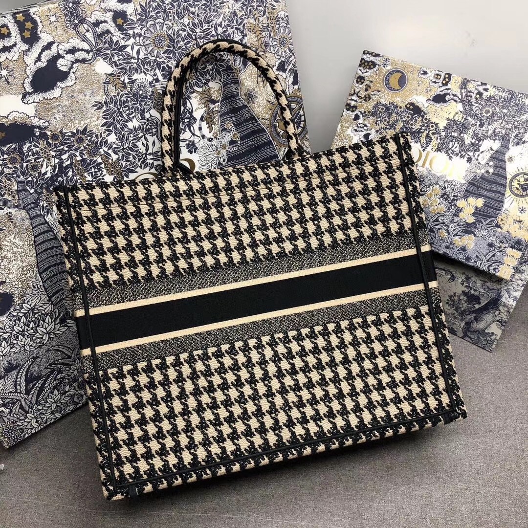 Dior Book Tote Bag In Houndstooth Embroidery Canvas