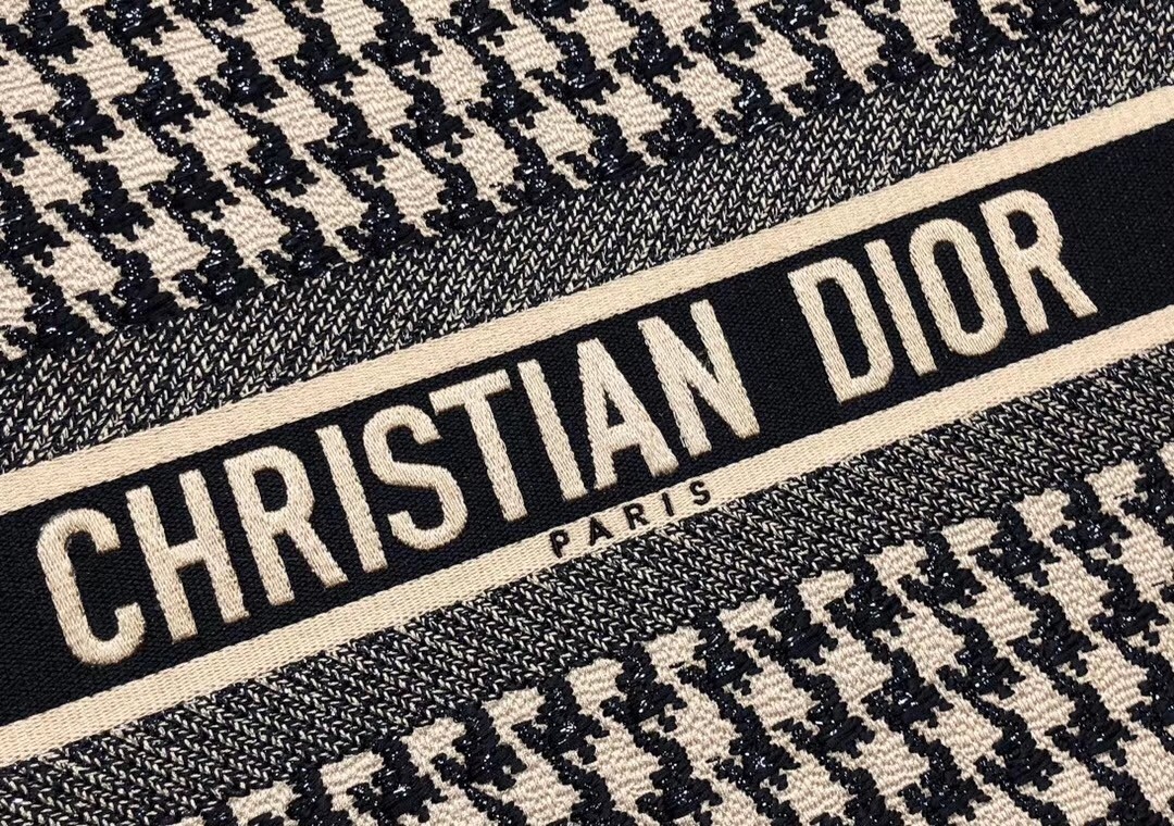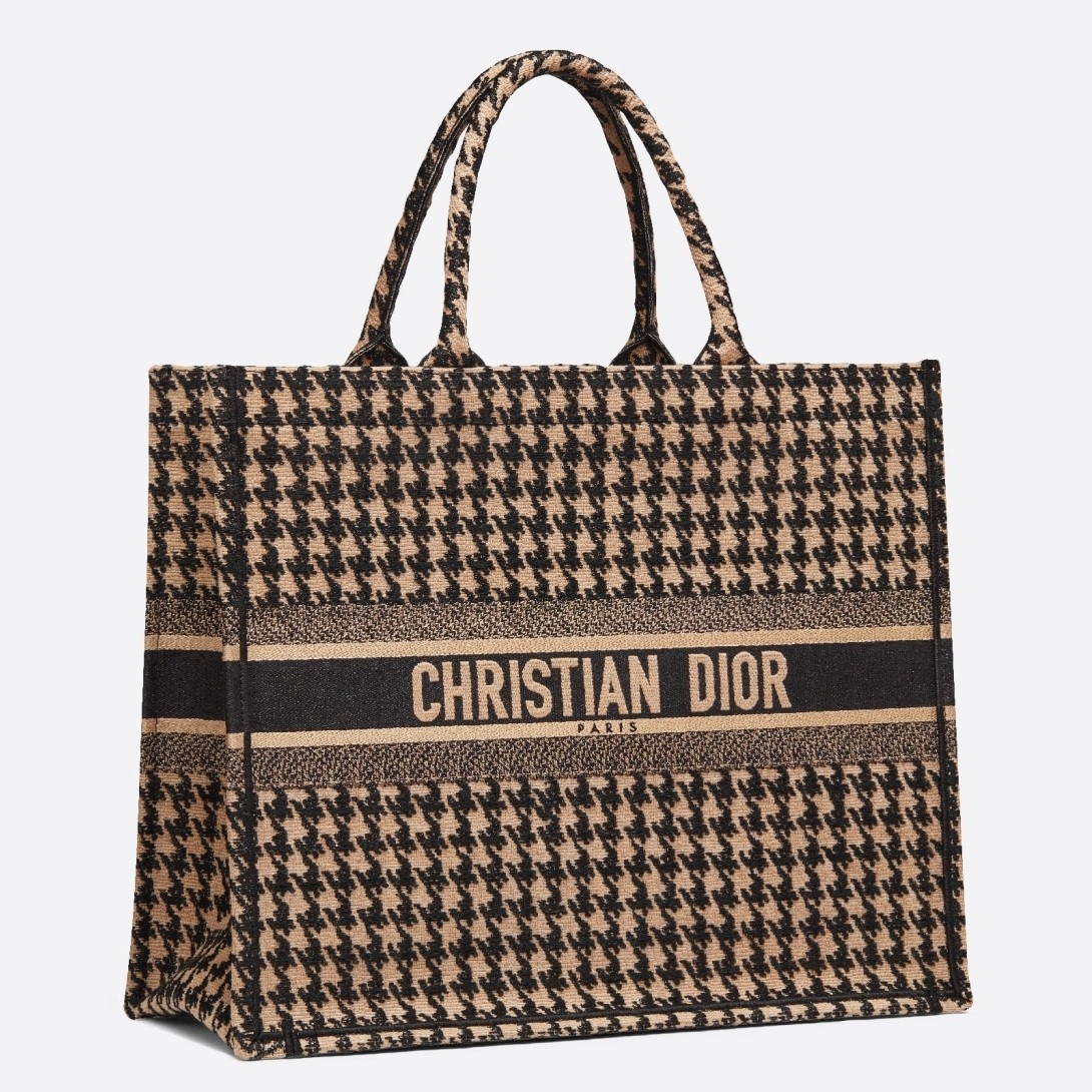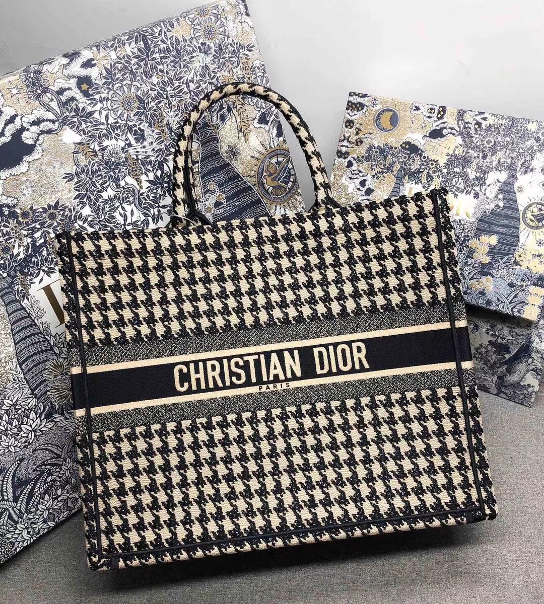 Dior Book Tote Bag In Houndstooth Embroidery Canvas