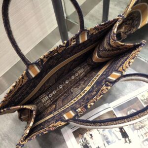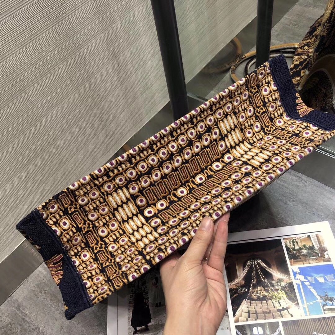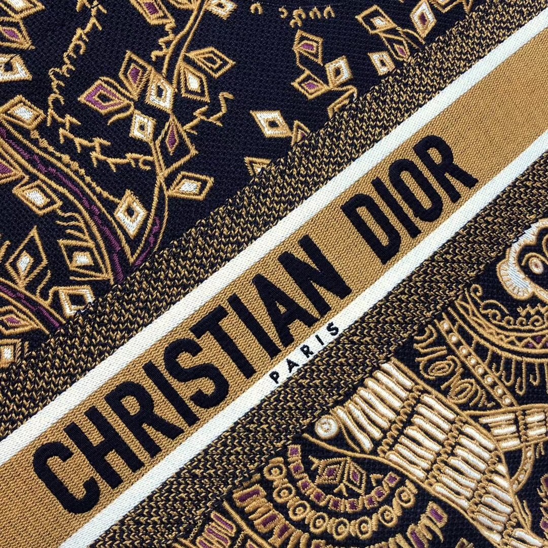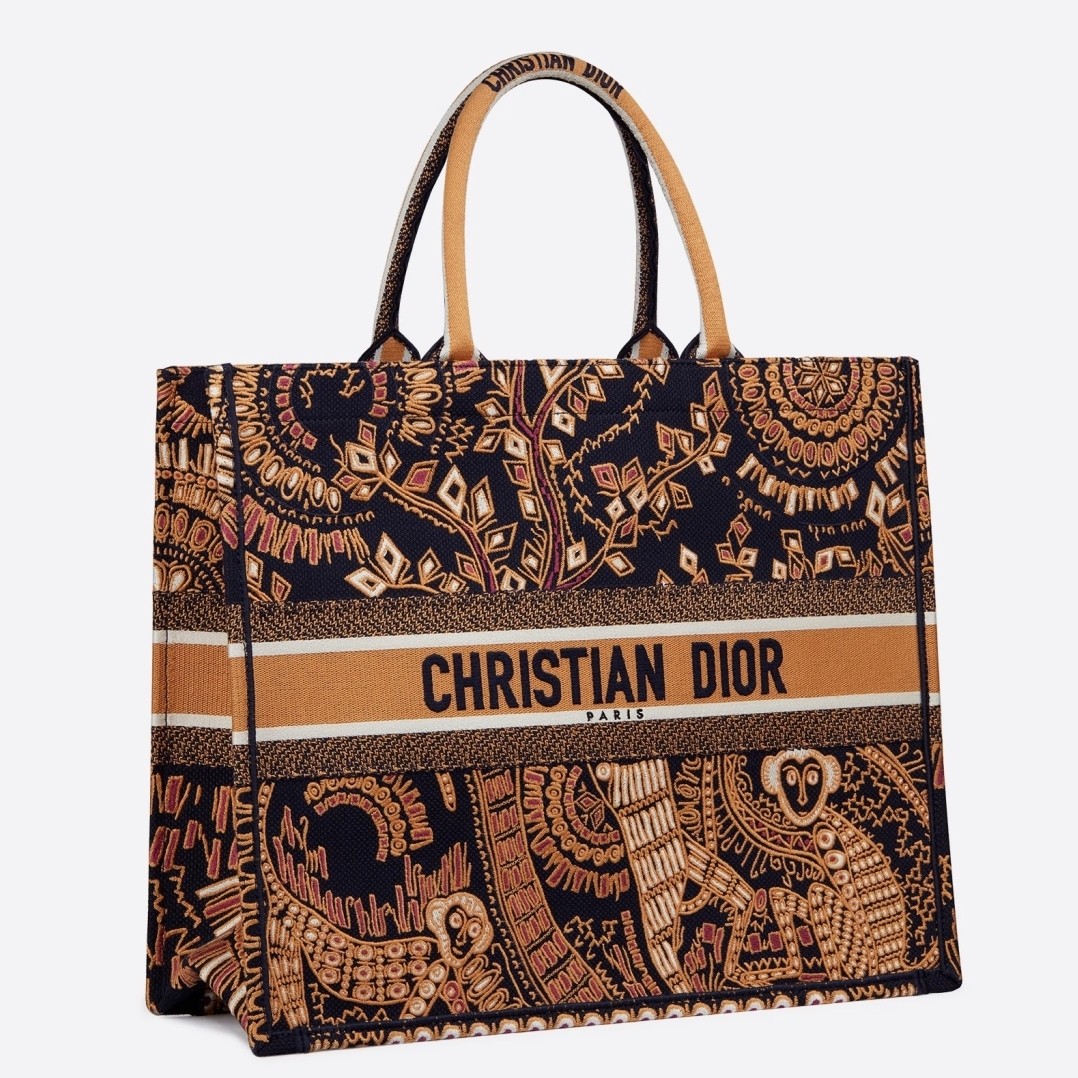 Dior Book Tote Bag In Orange Animals Embroidered Canvas