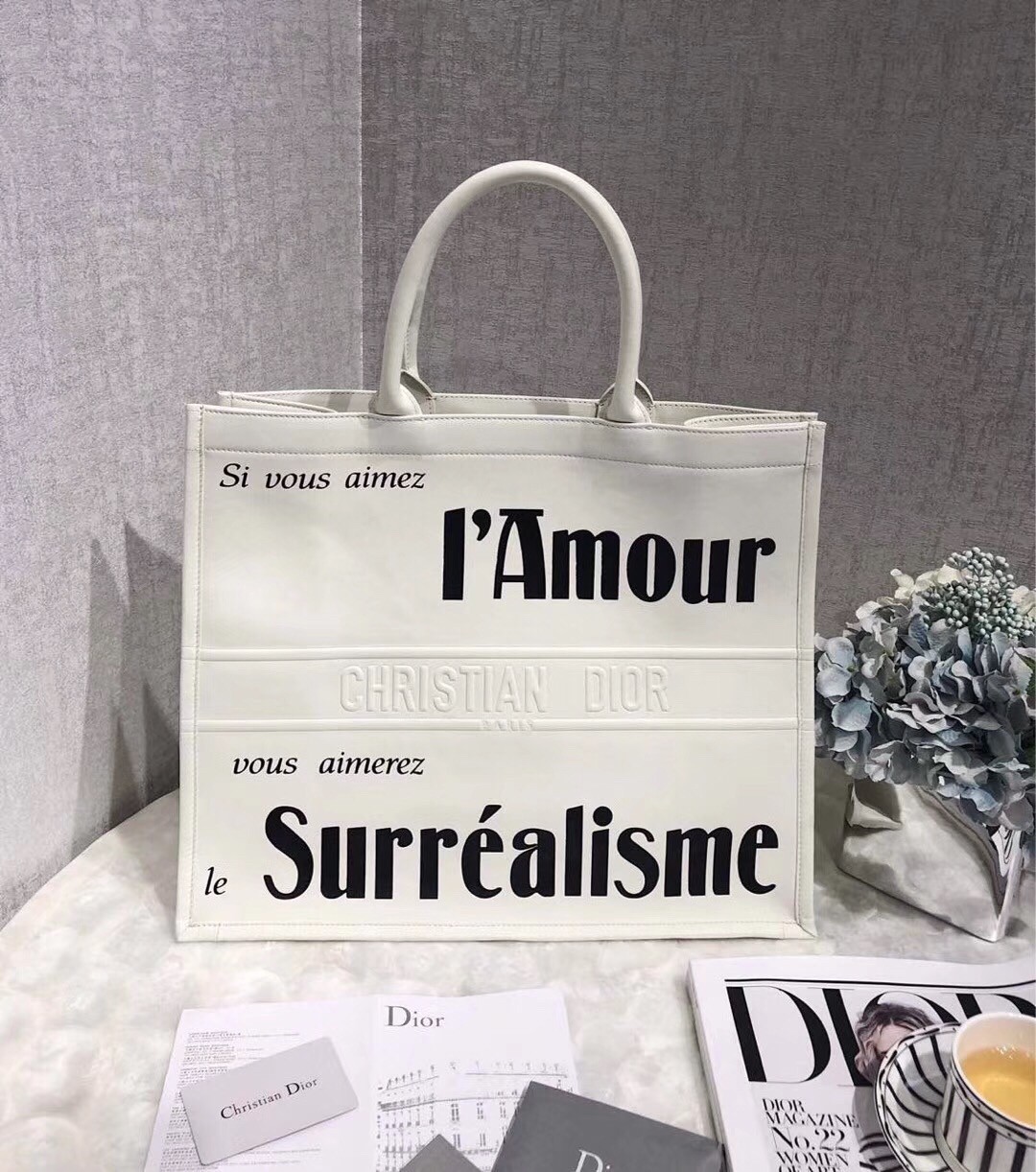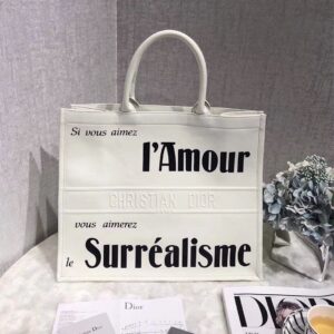 Dior Book Tote Bag In White Surrealism Printed Calfskin