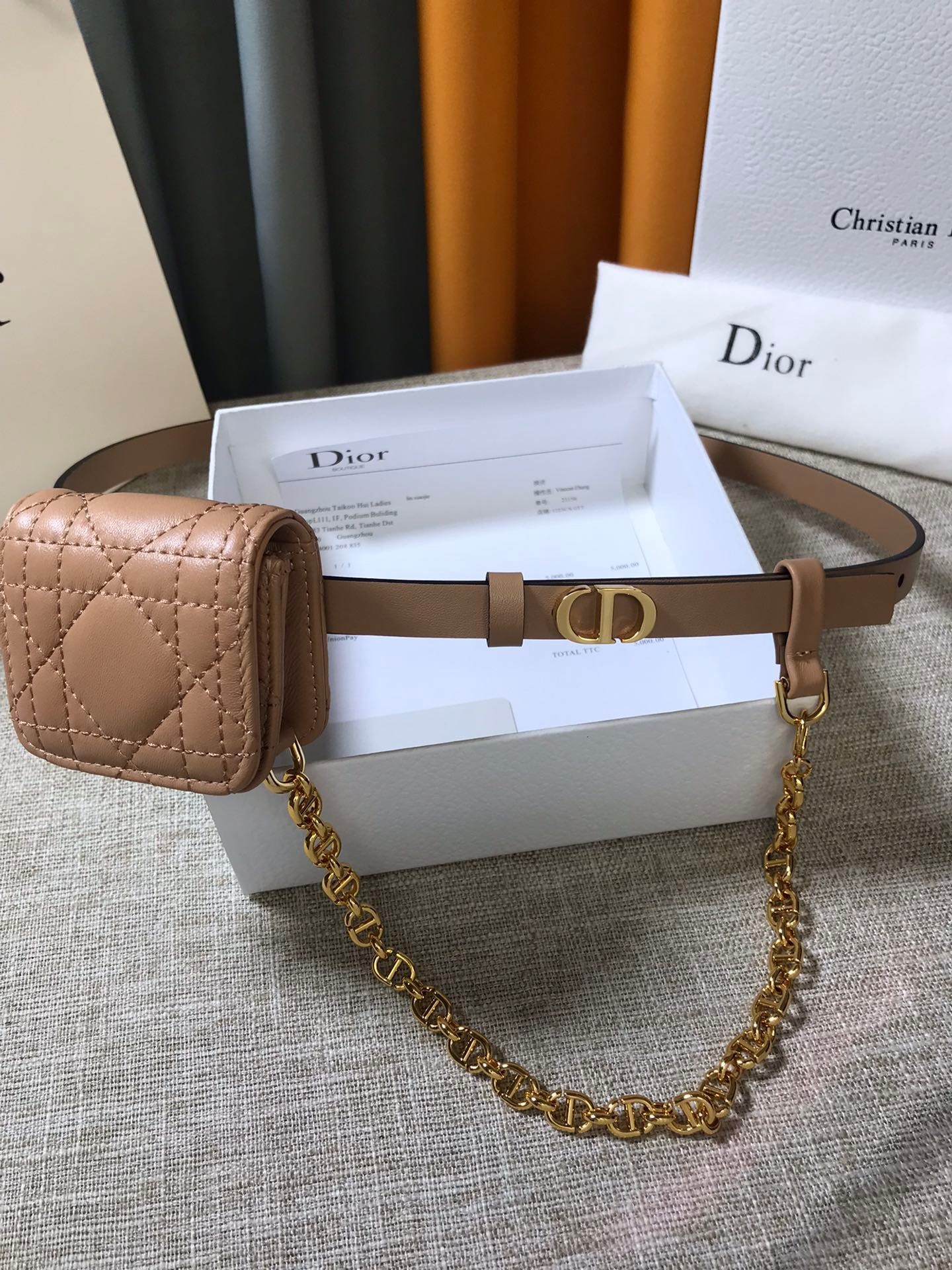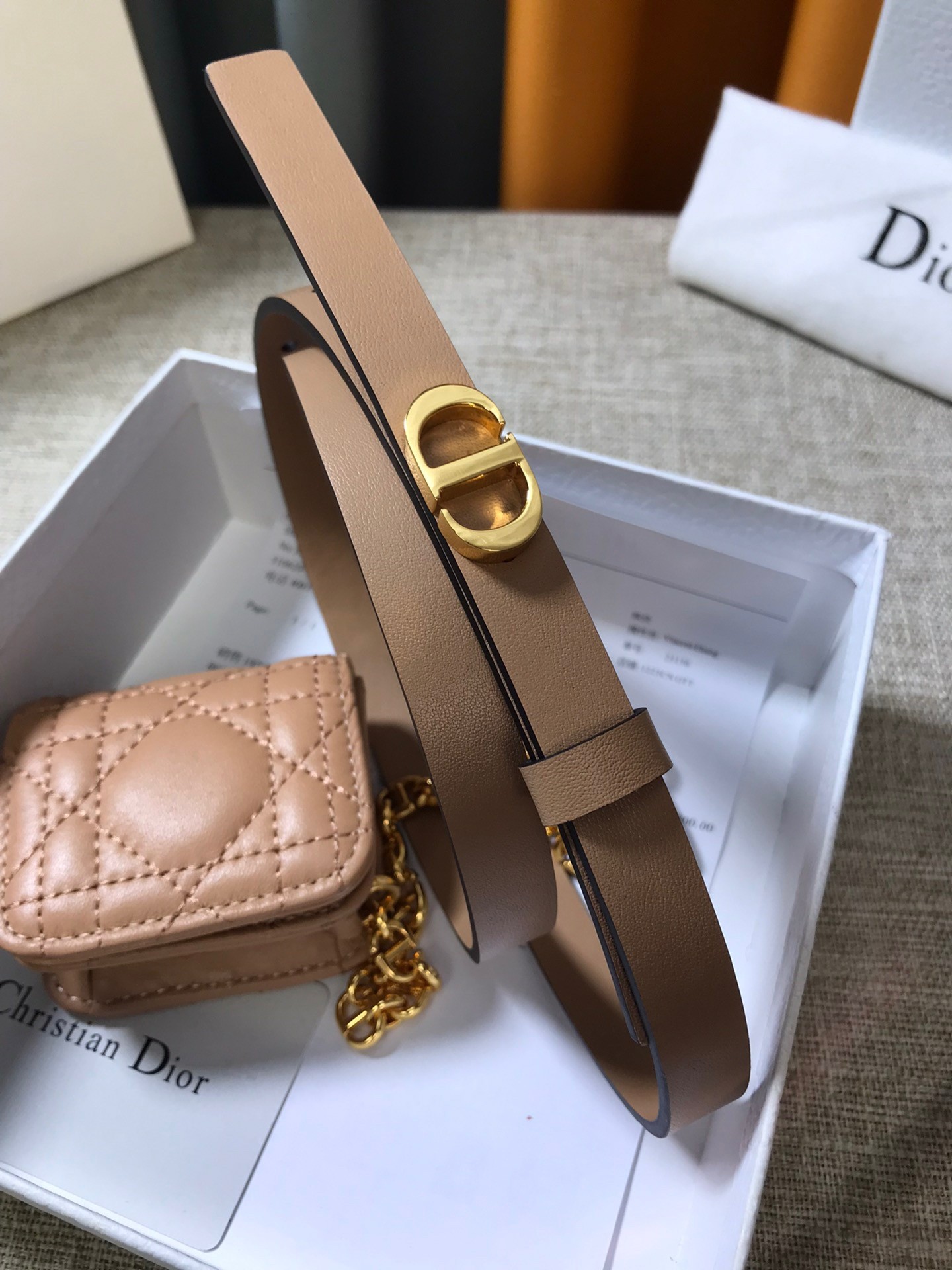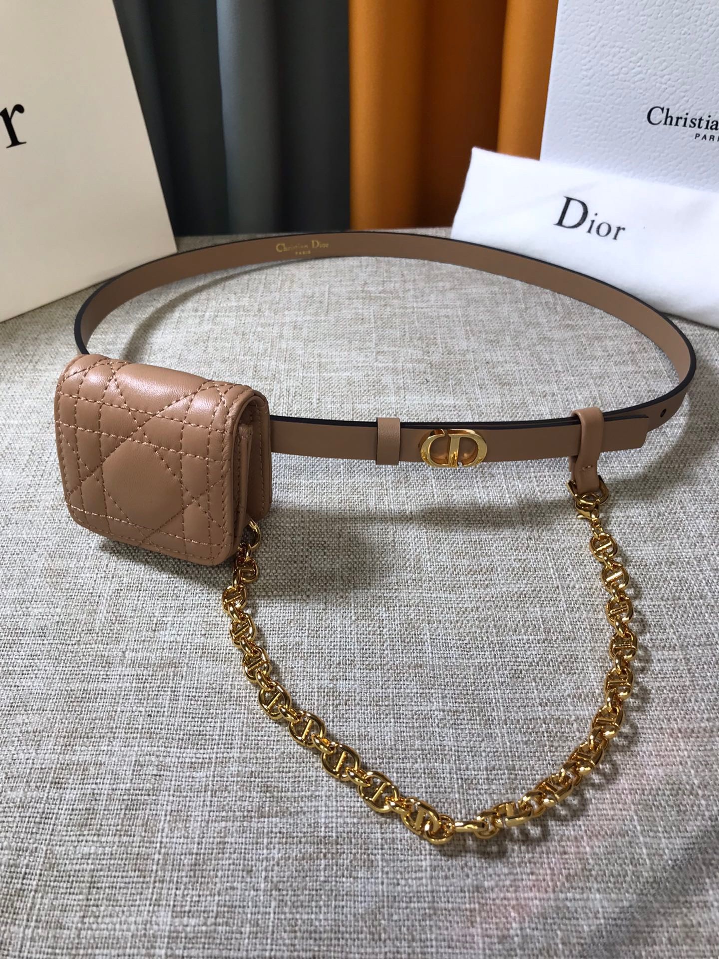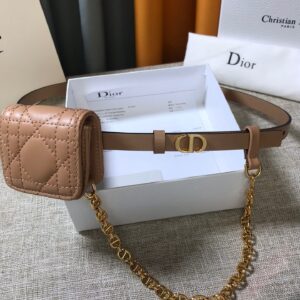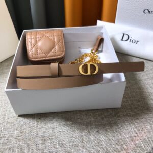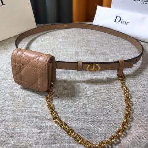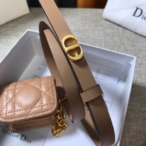 Dior Caro 15MM Belt with Removable Pouch in Beige Calfskin