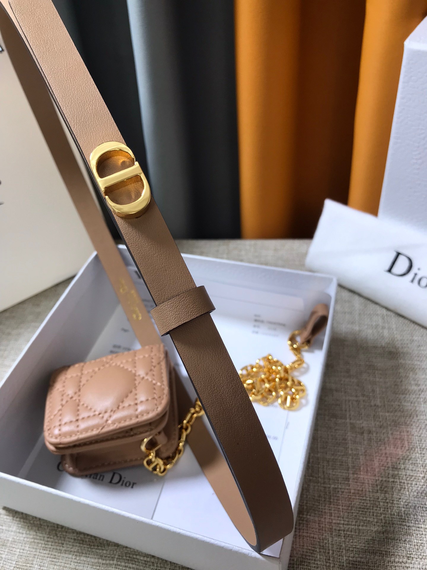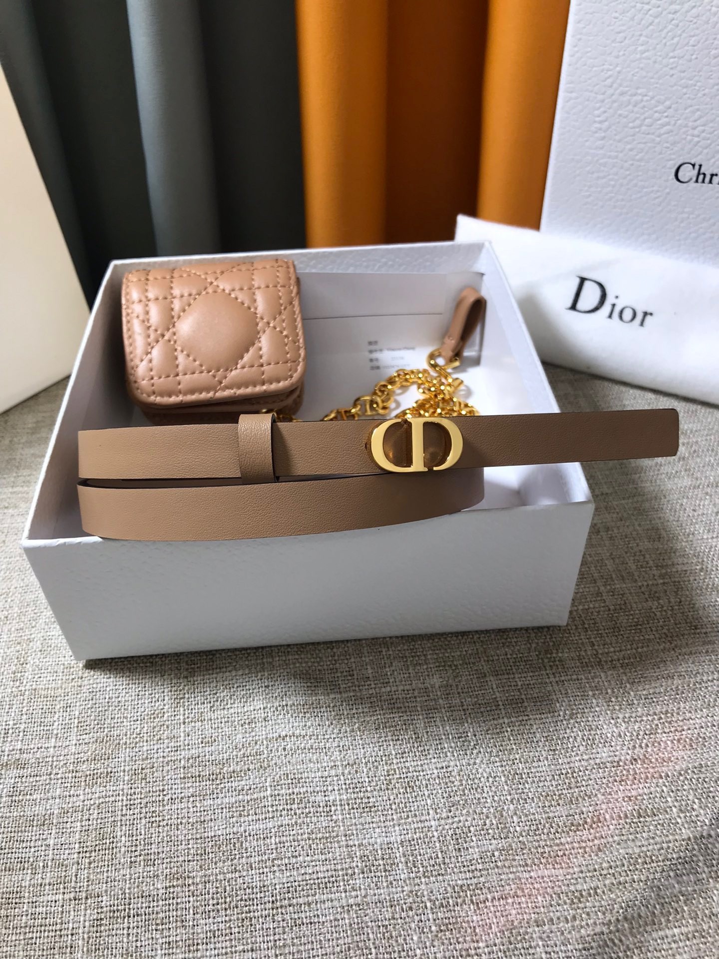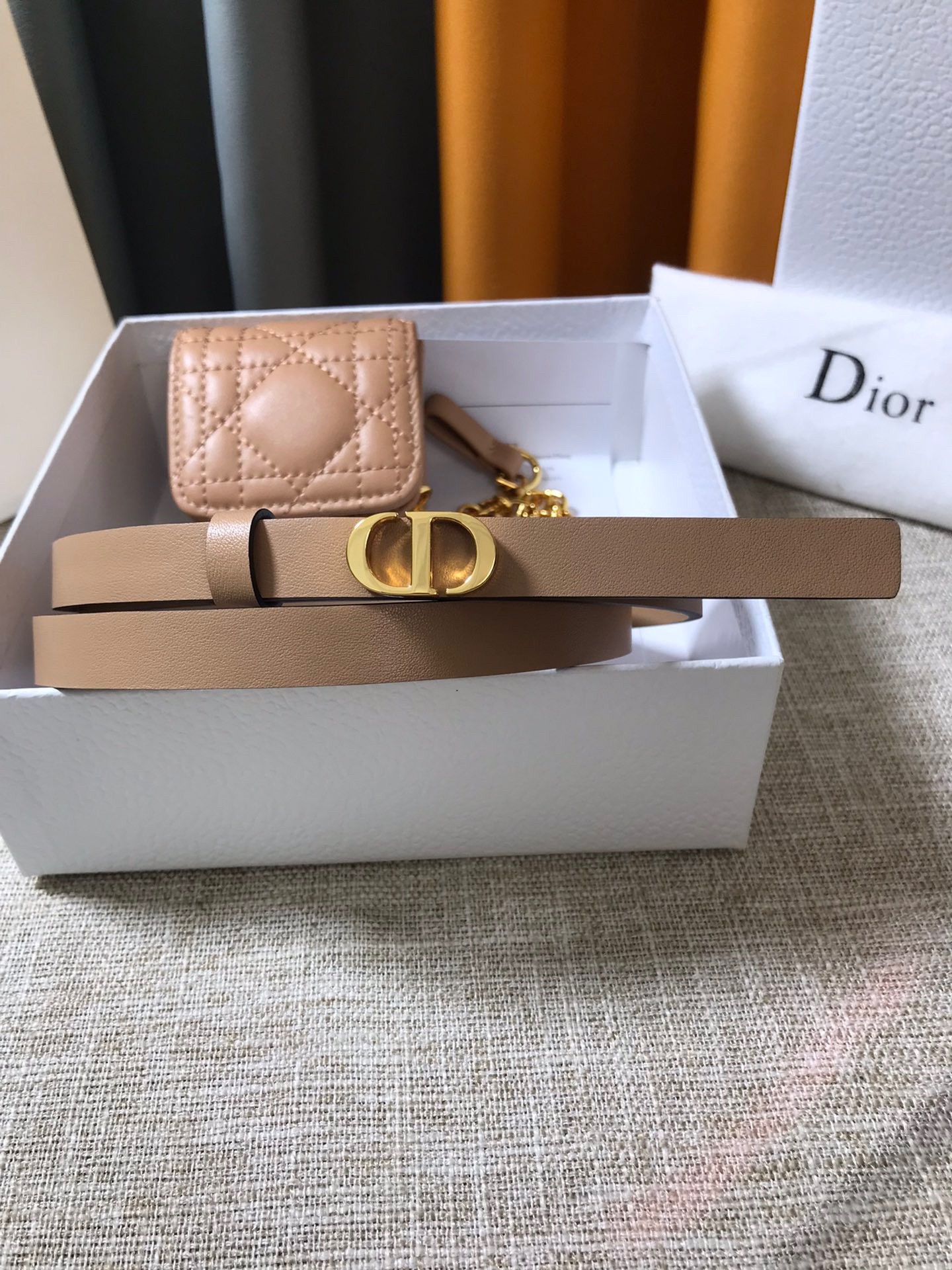 Dior Caro 15MM Belt with Removable Pouch in Beige Calfskin