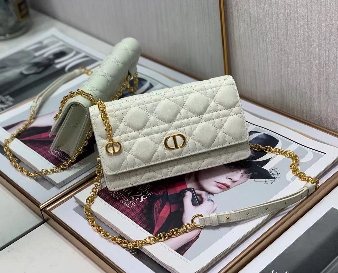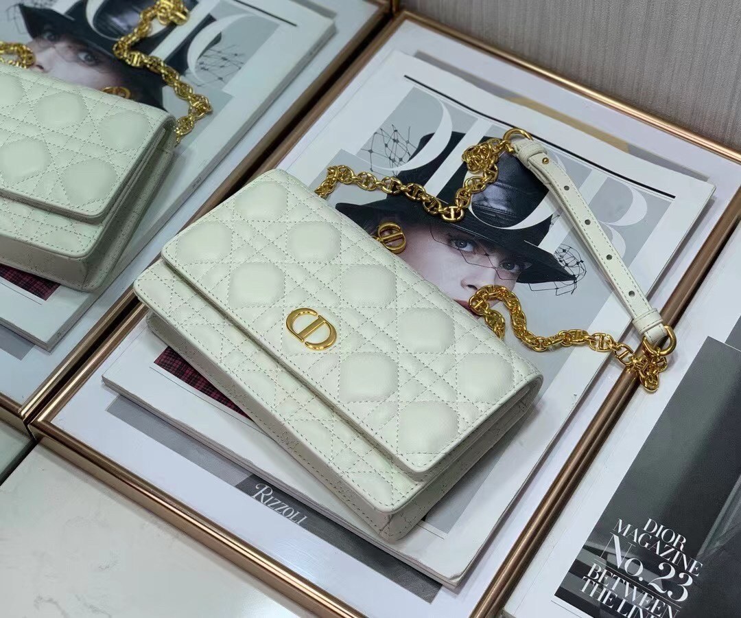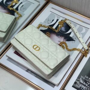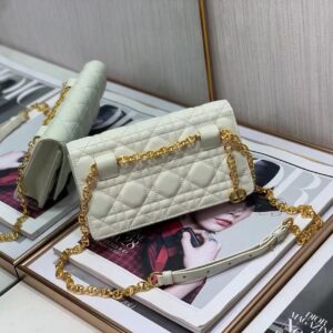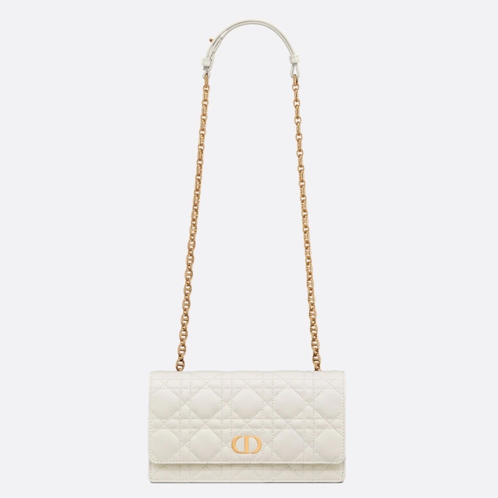 Dior Caro Belt Pouch with Chain In White Calfskin