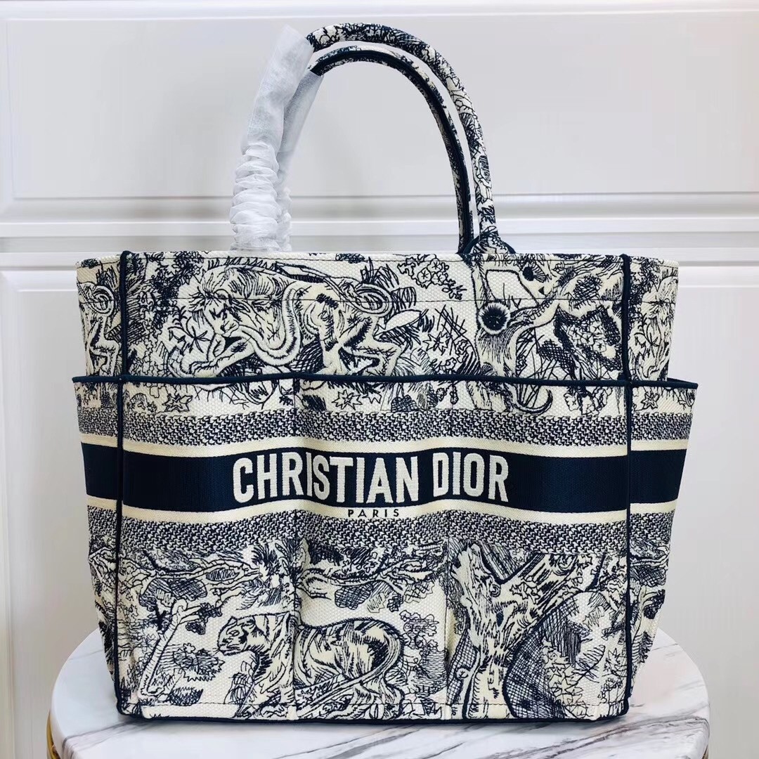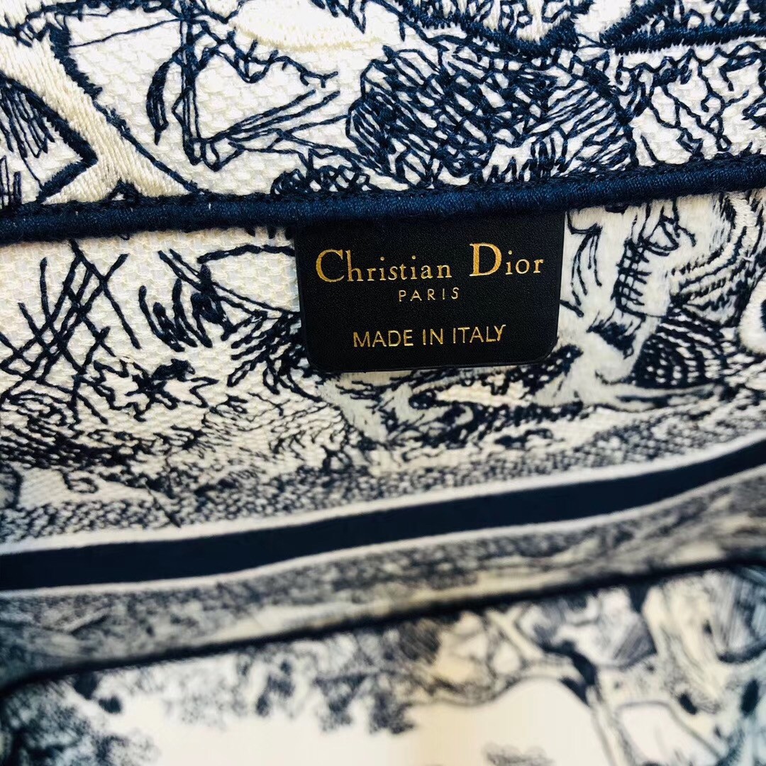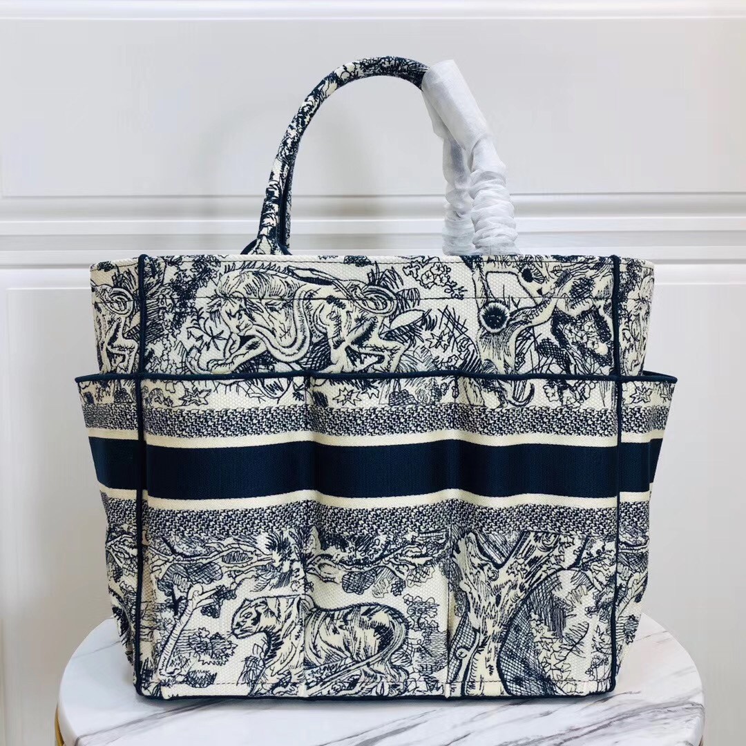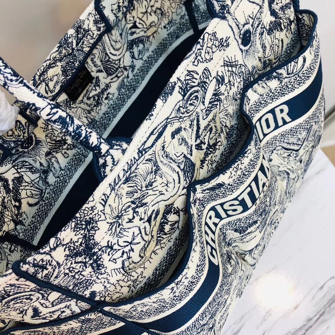 Dior Catherine Tote Bag In Blue Toile de Jouy Embroidery