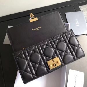 Dior DiorAddict Continental Wallet In Black Lambskin