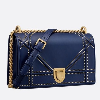 Dior Diorama Bag In Blue Studded Lambskin