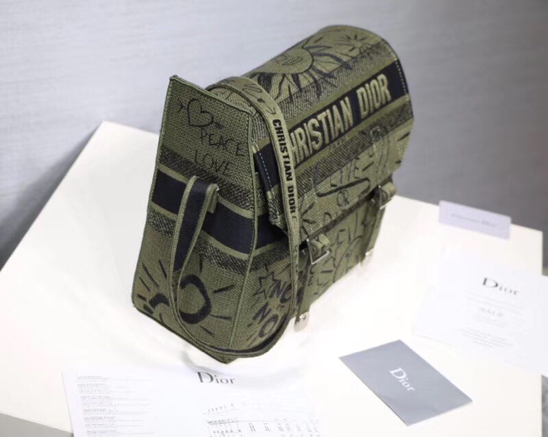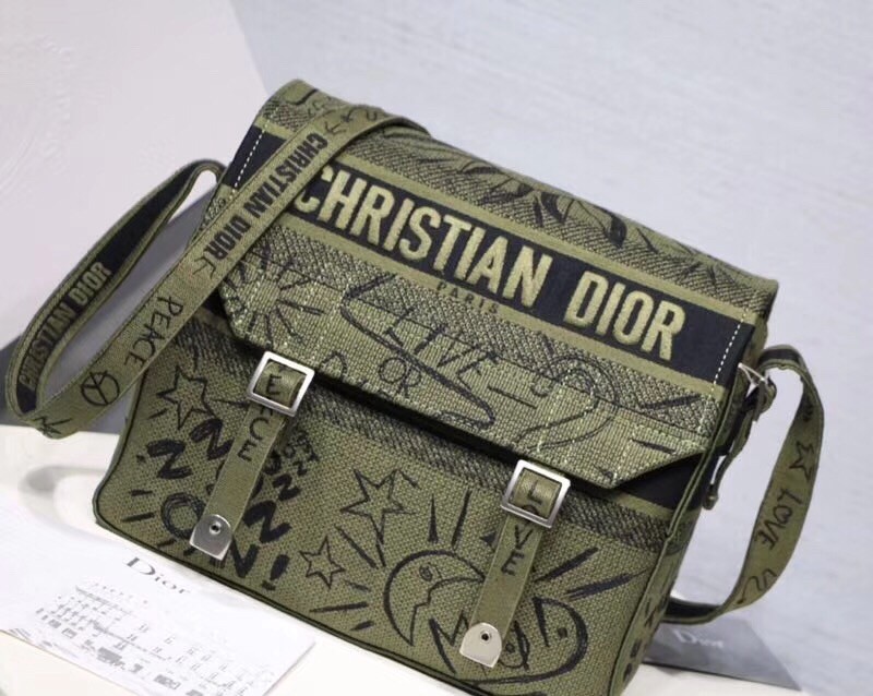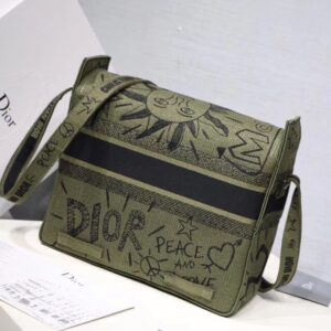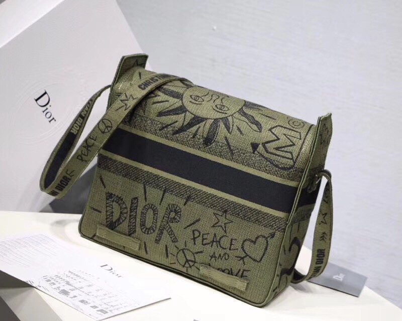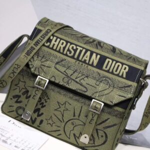 Dior Diorcamp Messenger Bag In Green Embroidered Canvas