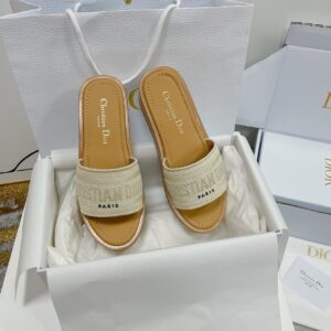 – Thick sole in wood, rubber and cork with engraved star, Christian Dior’s lucky symbol