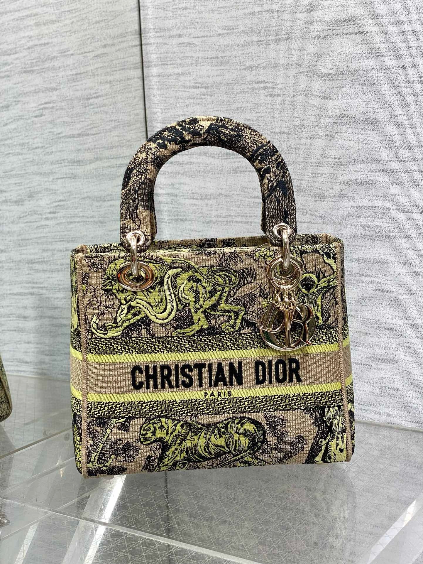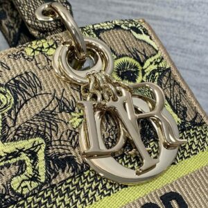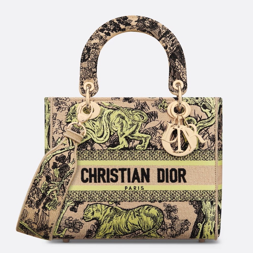 Dior Dioriviera Lady D-Lite Medium Bag in Raffia with Lime Toile de Jouy Sauvage Embroidery