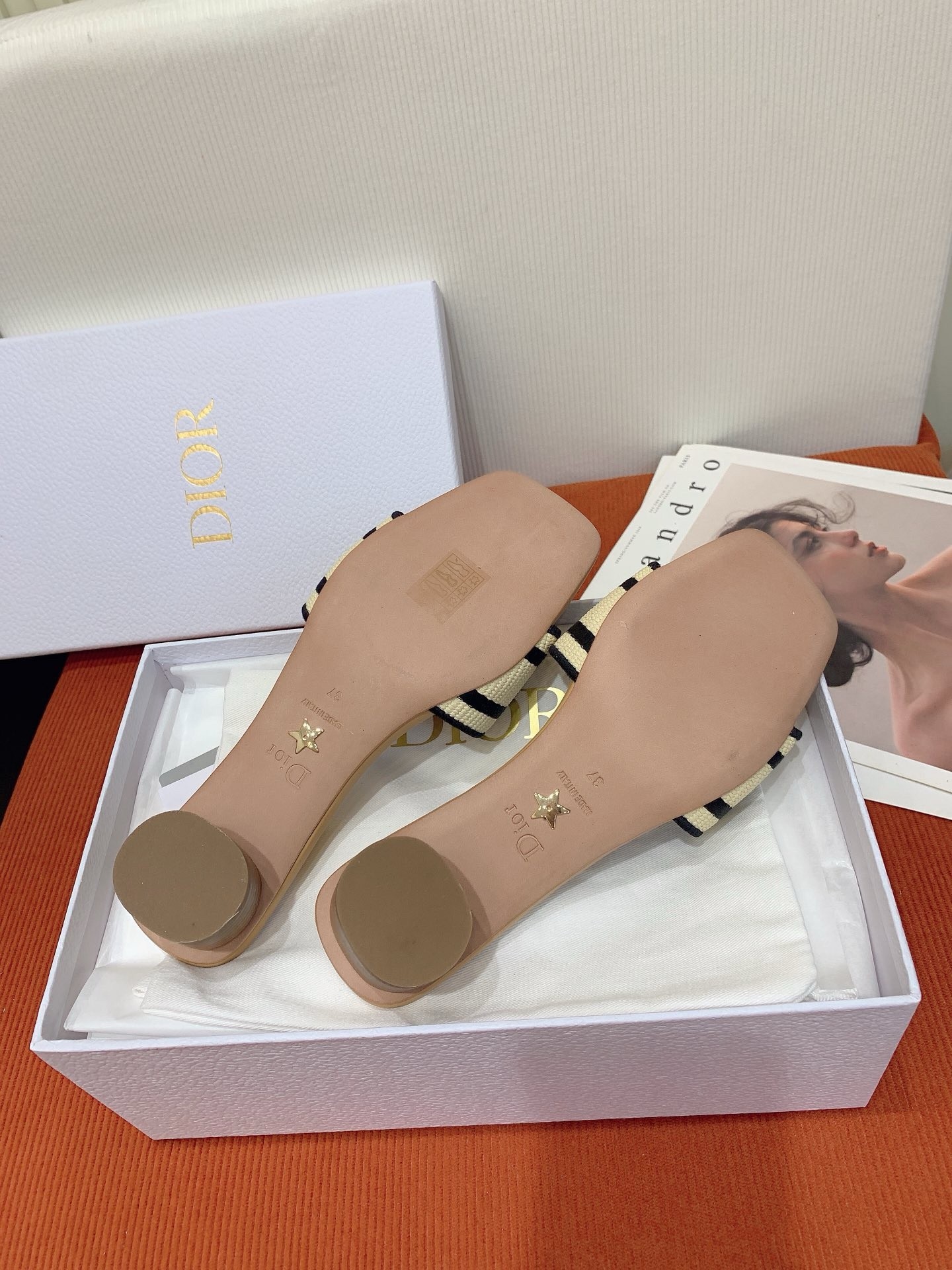 – Leather sole with engraved star, Christian Dior’s lucky symbol