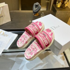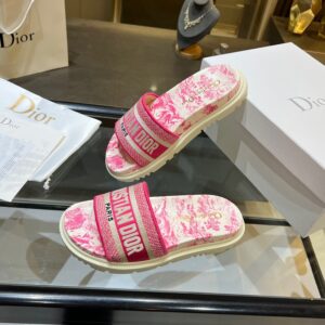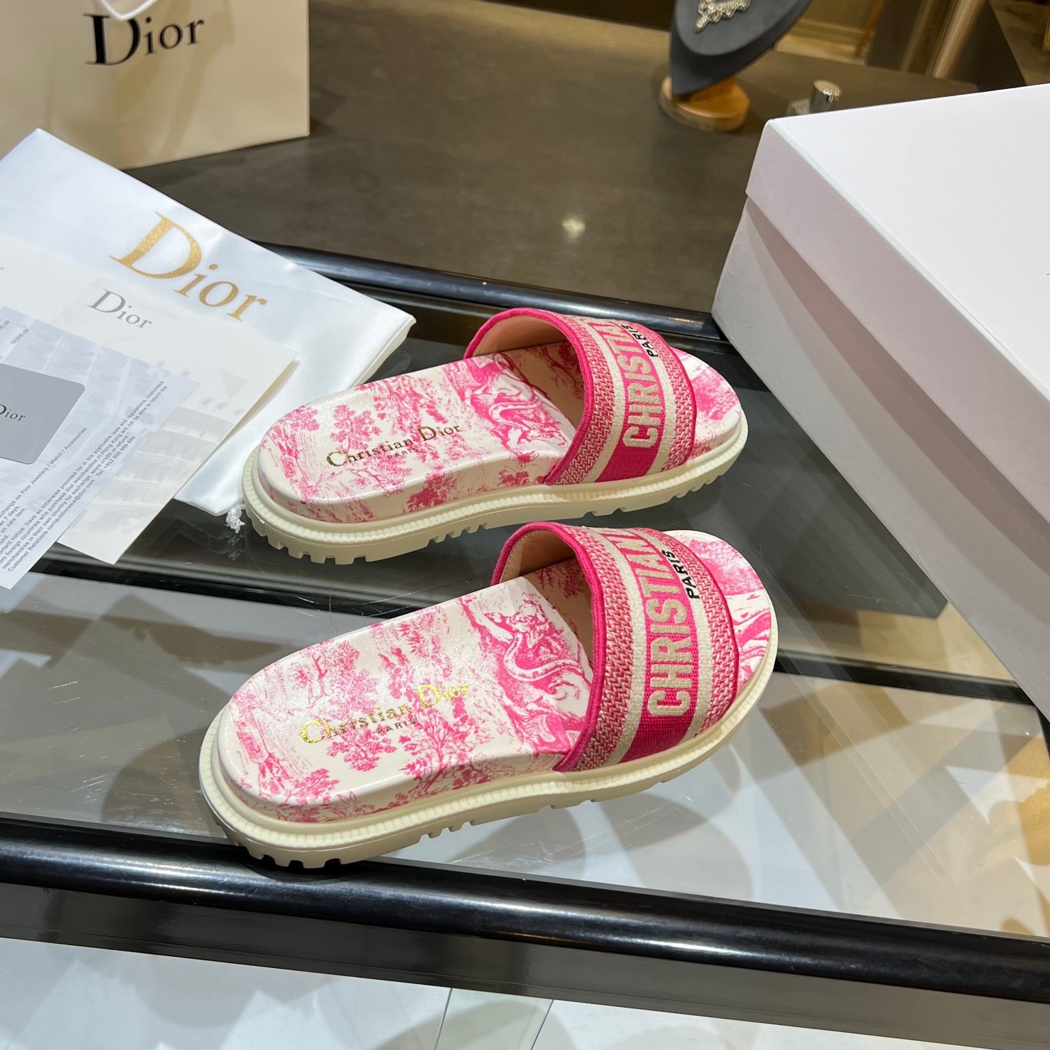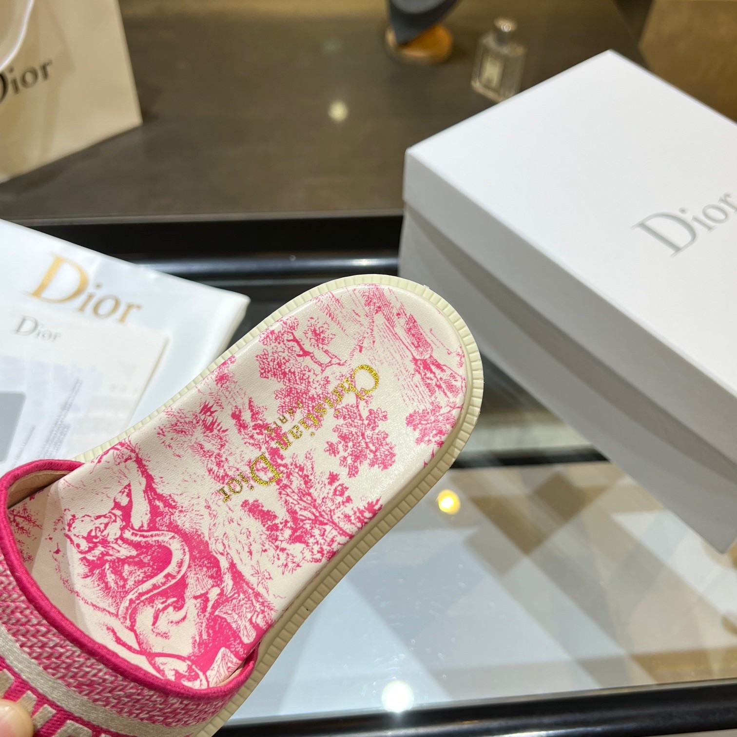 Dior Dway Slides In Bright Pink Toile de Jouy Embroidered Cotton