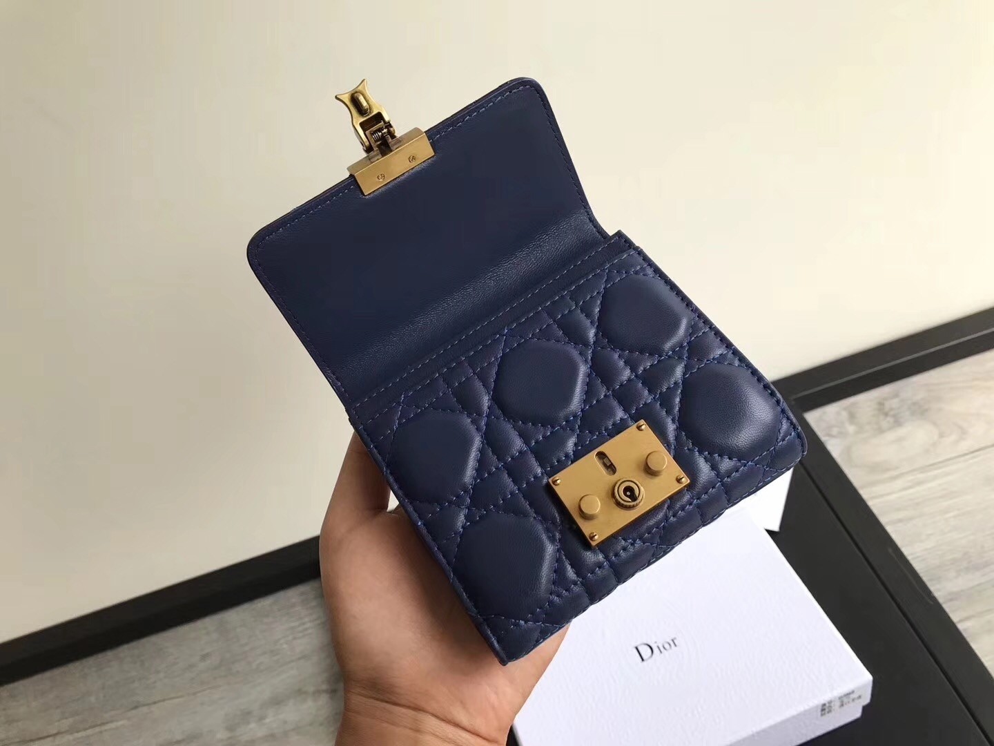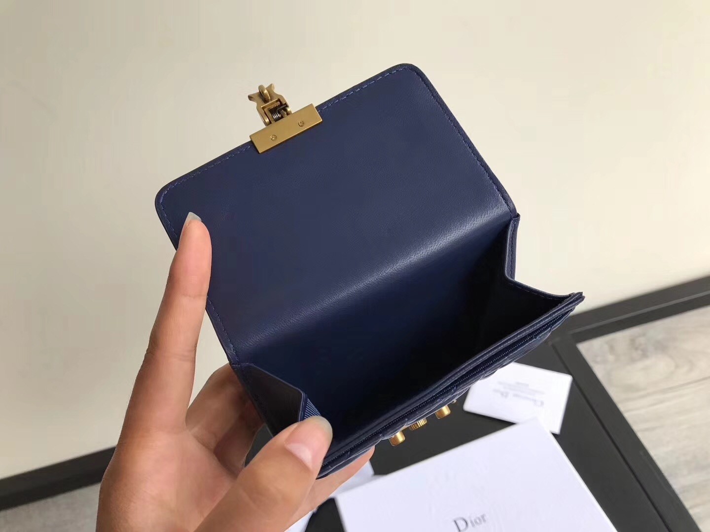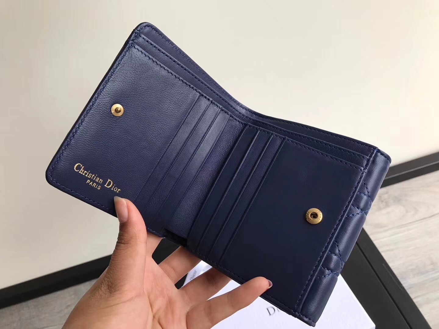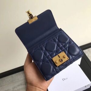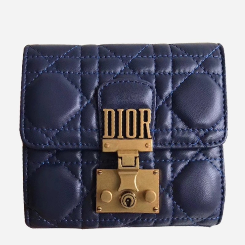 Dior French DiorAddict Wallet In Navy Blue Lambskin