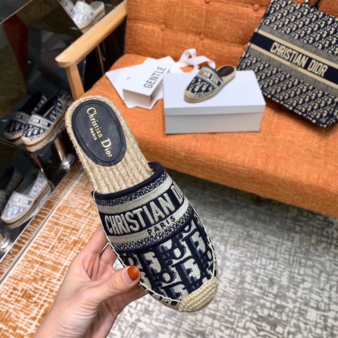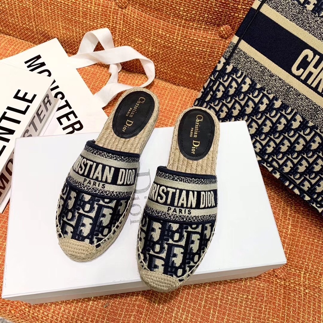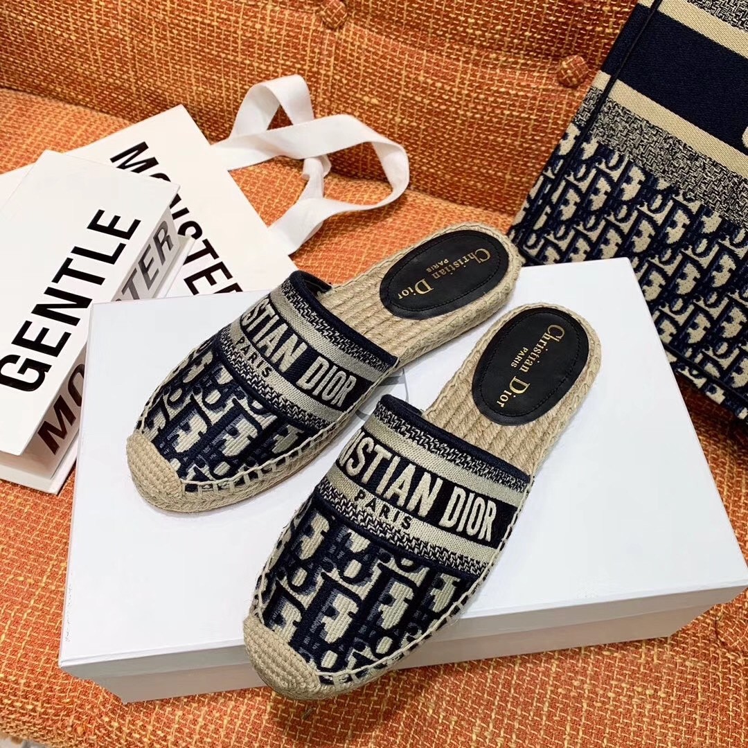 Dior Granville Mules In Blue Oblique Embroidered Cotton