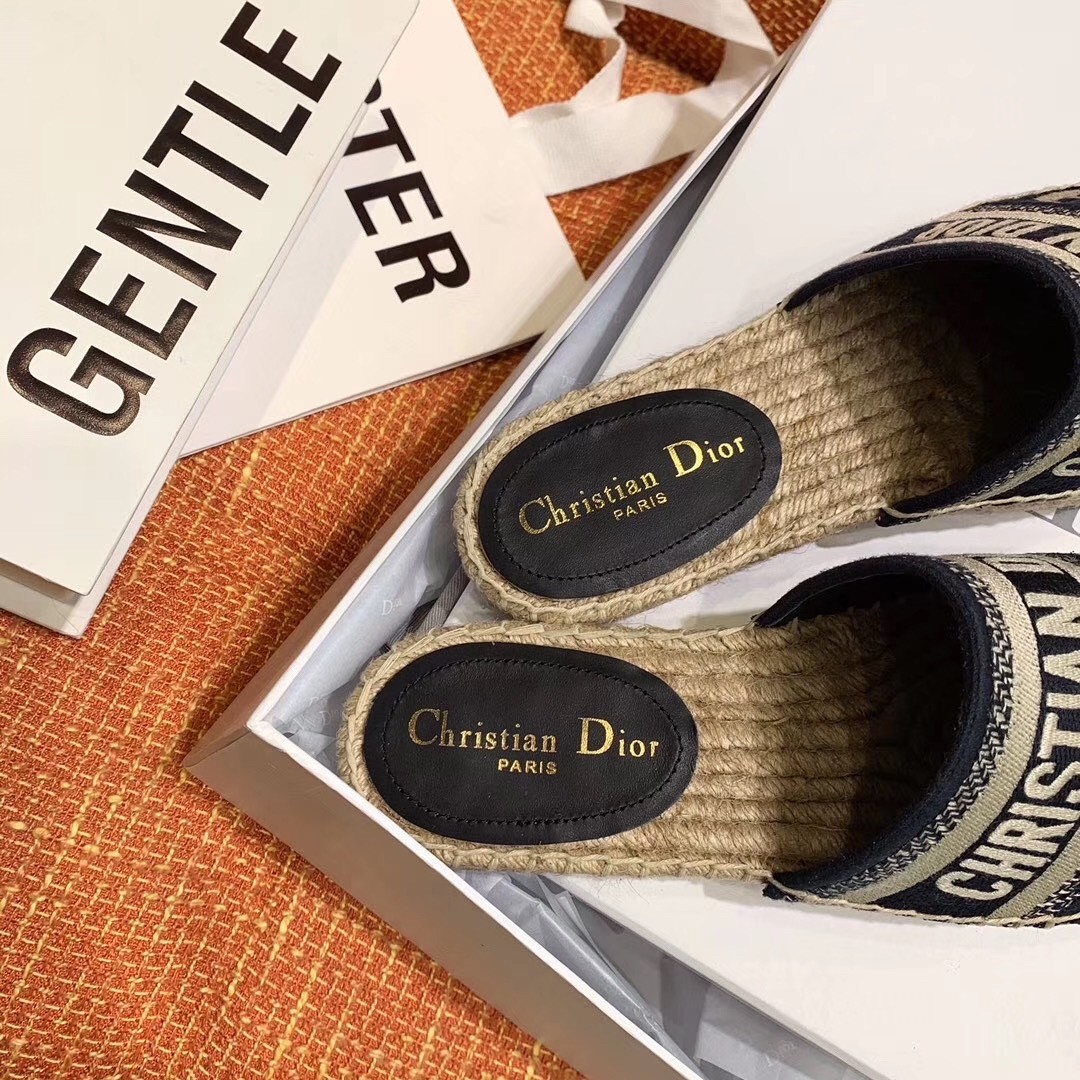 – Rope wedge and thin rubber sole with a star emblem, a signature Christian Dior symbol