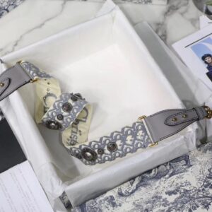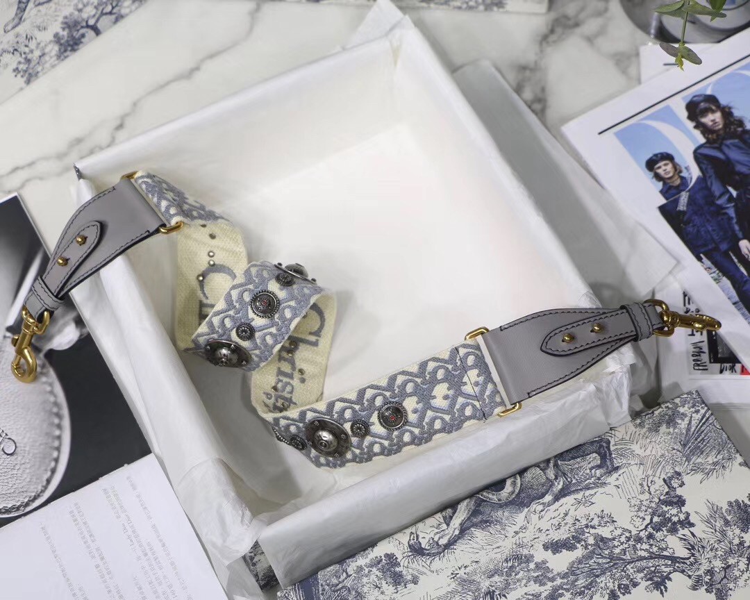 – Gray multicolor Dior Oblique embroidery with gray calfskin