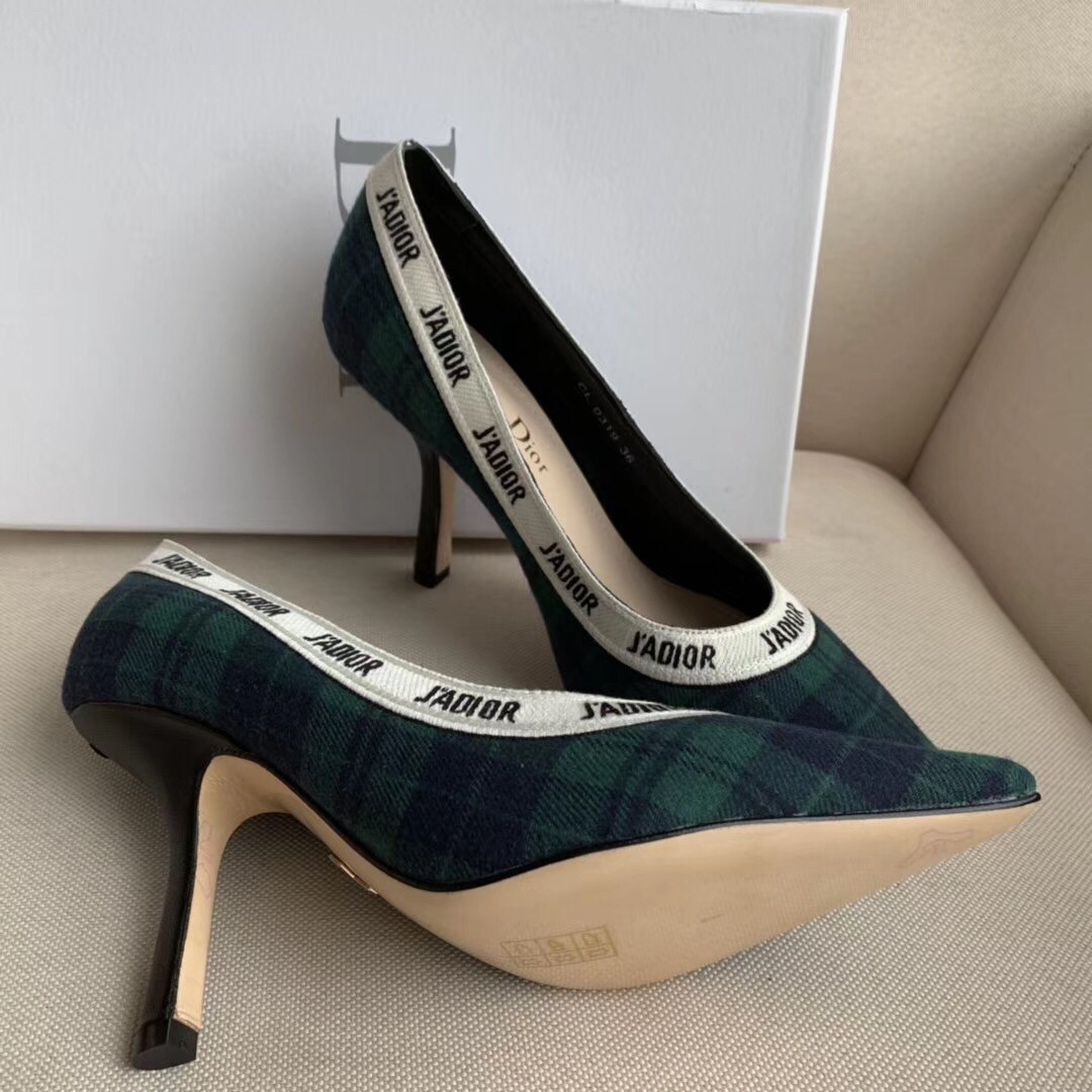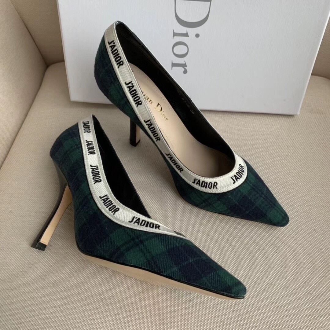 Dior J'Adior 100MM Pumps In Black and Green Tartan Fabric