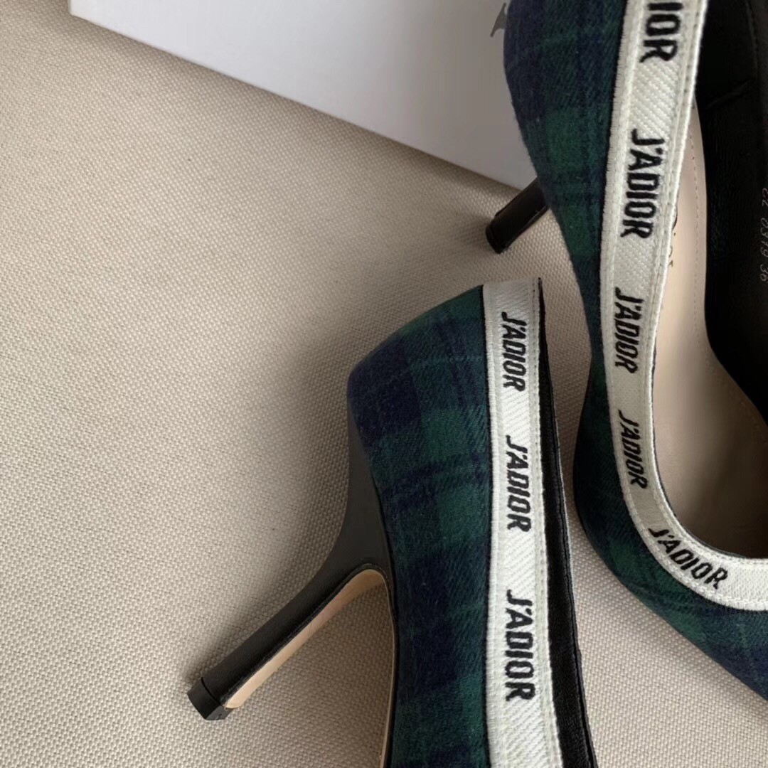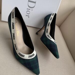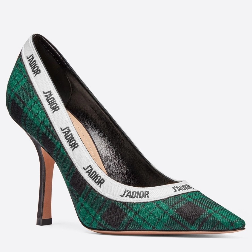 Dior J’Adior 100MM Pumps In Black and Green Tartan Fabric