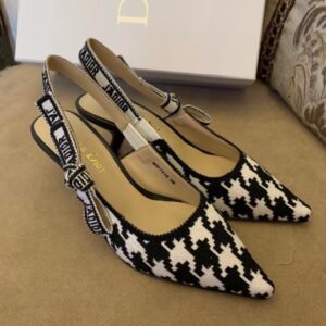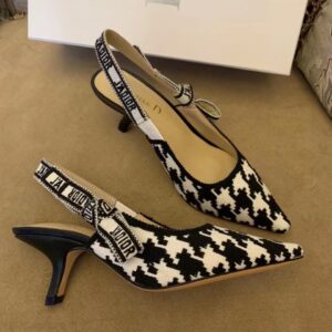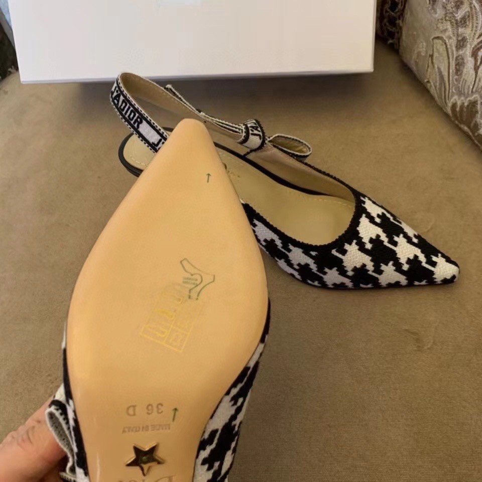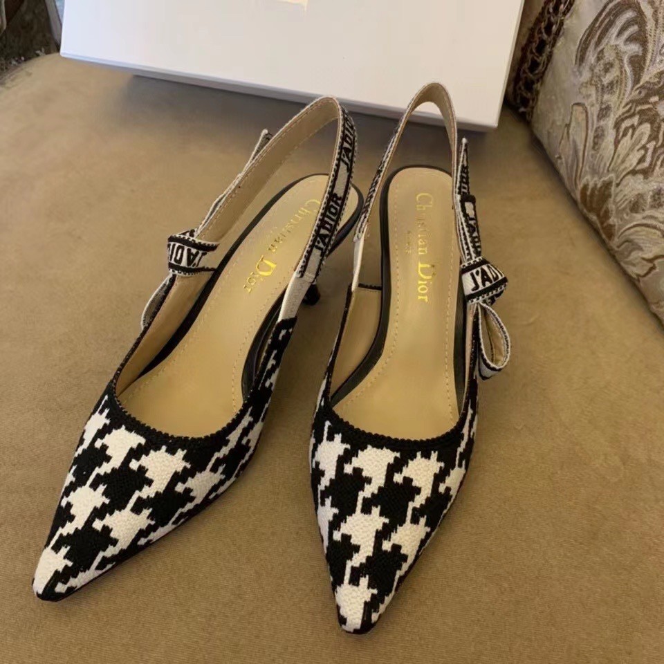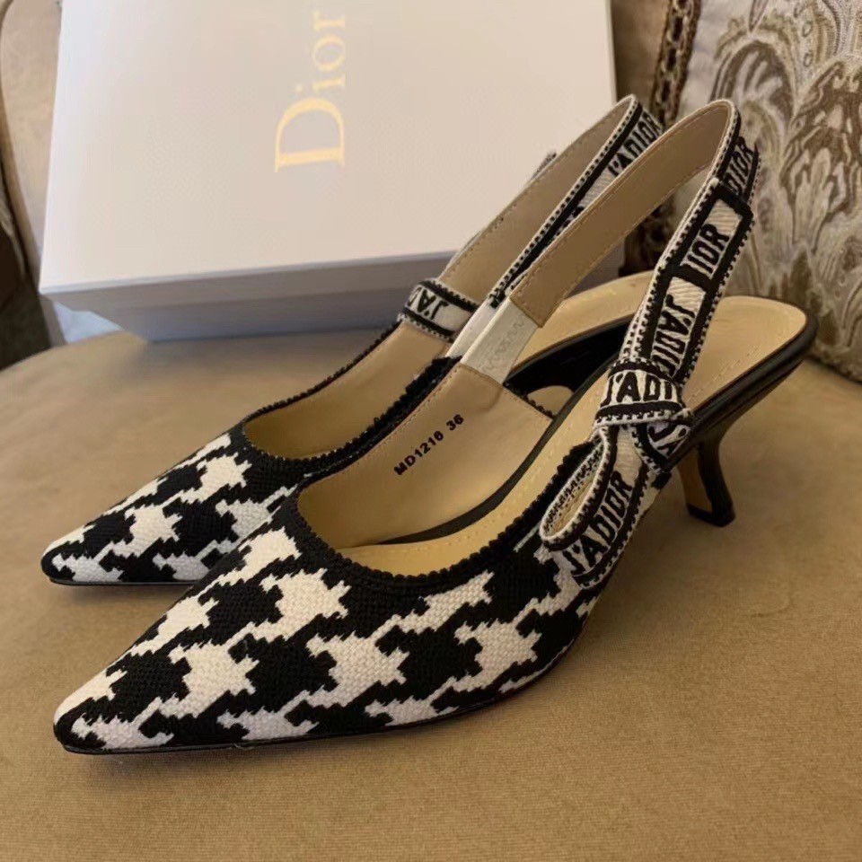 Dior J’Adior Slingback 65mm Pumps In Black Houndstooth Embroidery