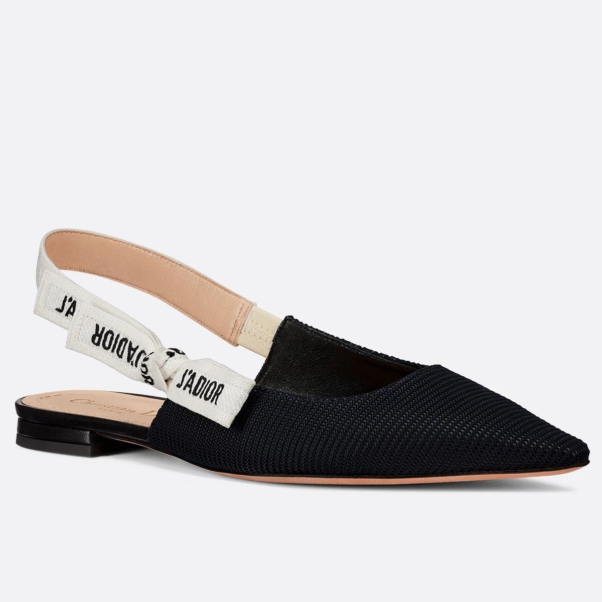 Dior J'Adior Slingback Ballerina Flats In Black Technical Fabric