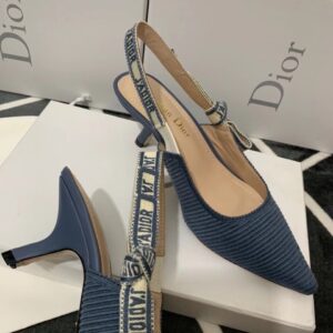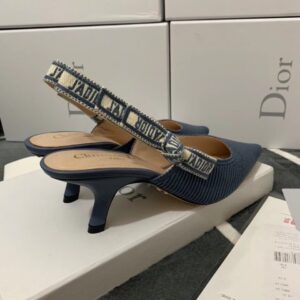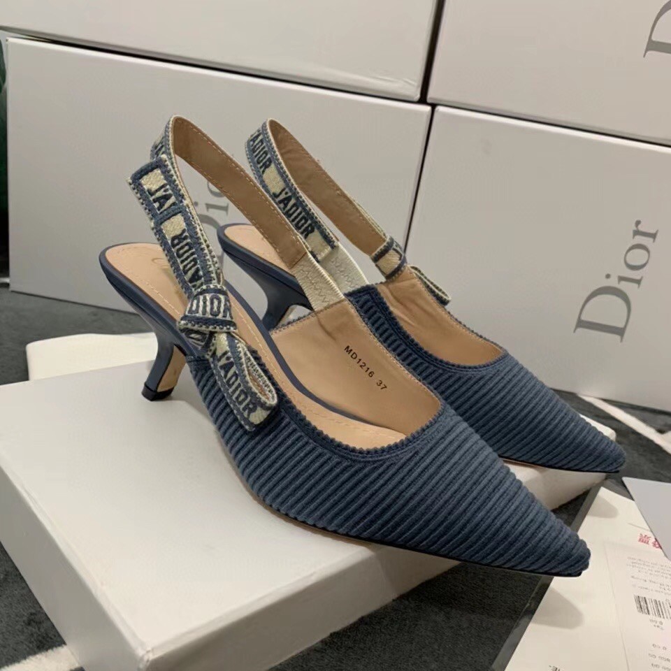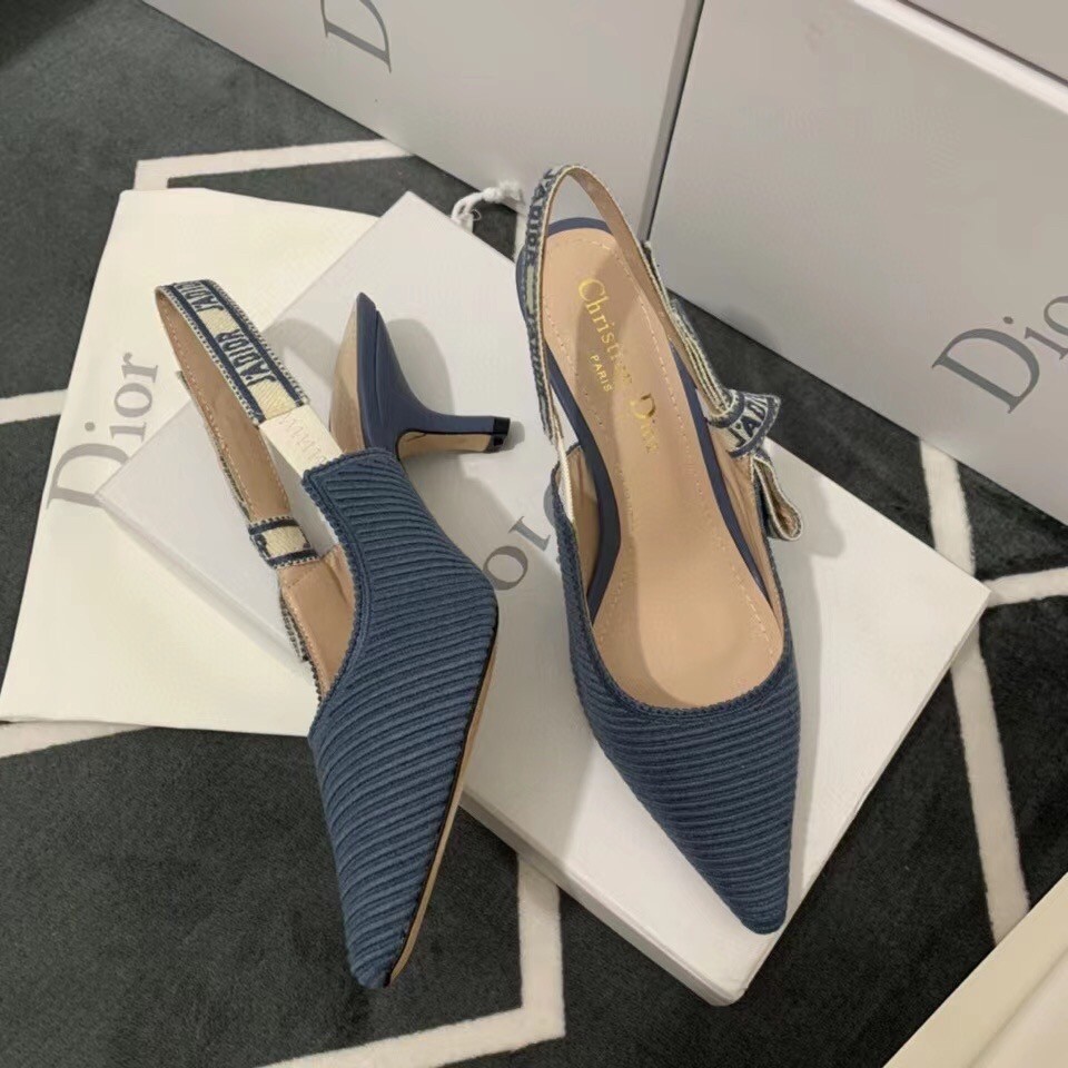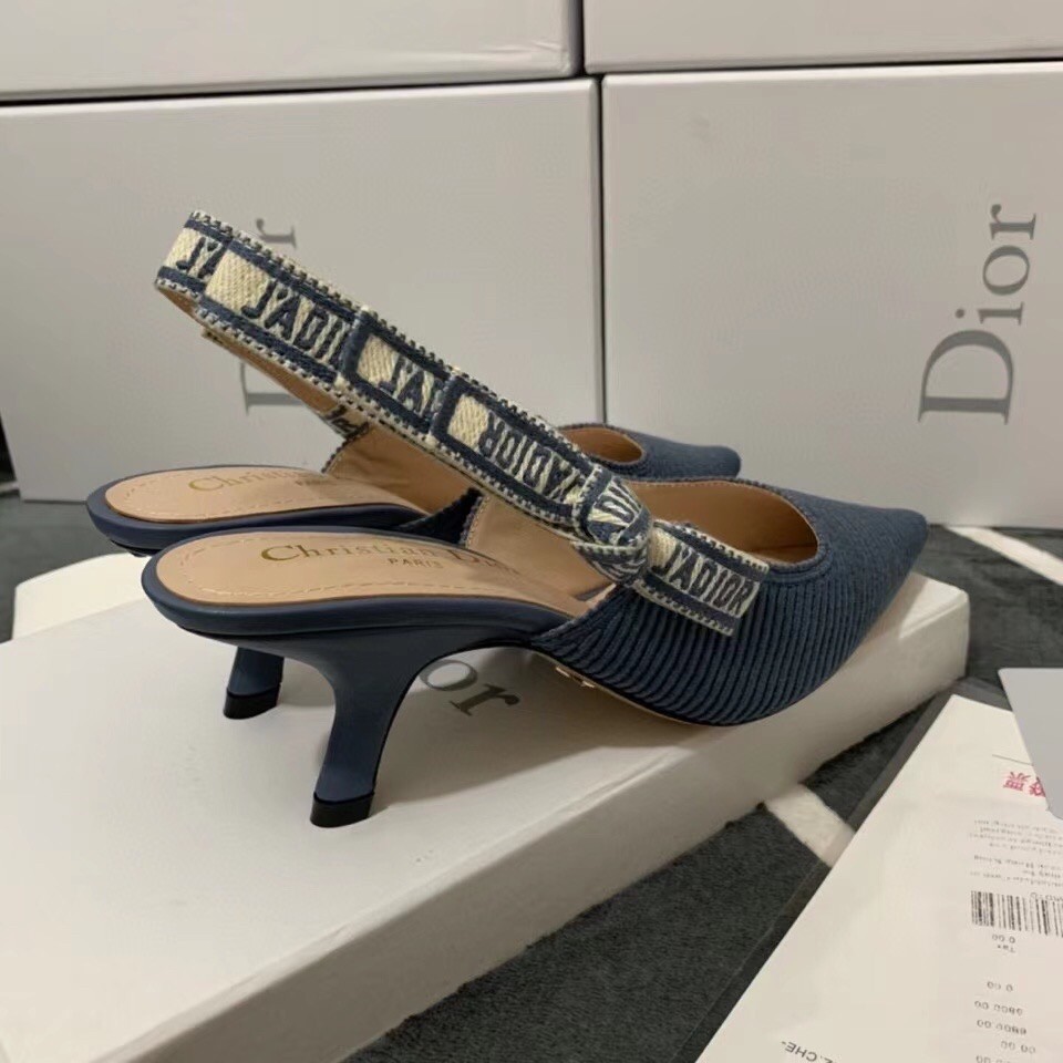 Dior J’Adior Slingback Pumps 65mm In Blue Embroidered Cotton