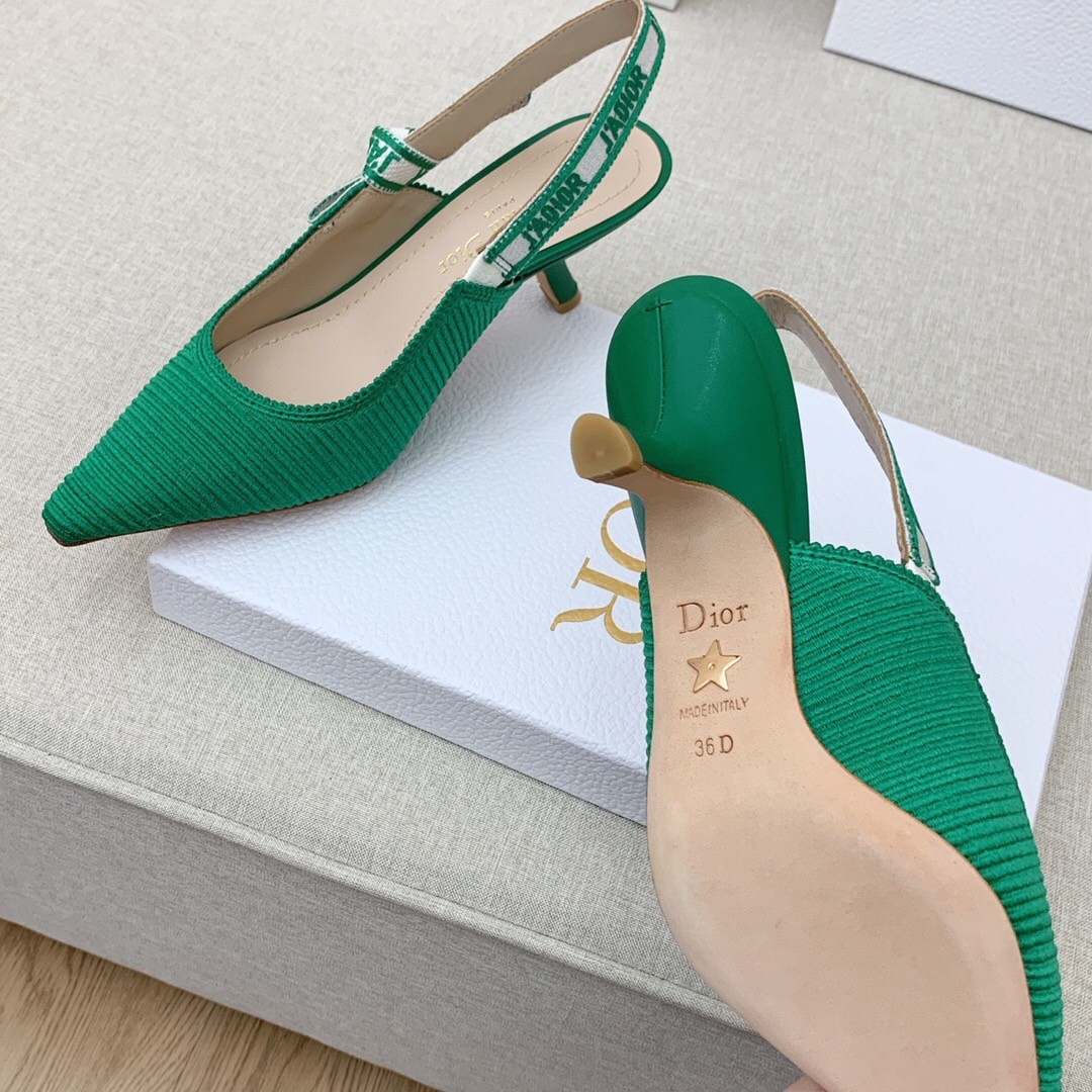 Dior J’Adior Slingback Pumps 65mm In Green Cotton Embroidery