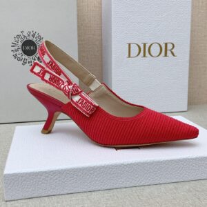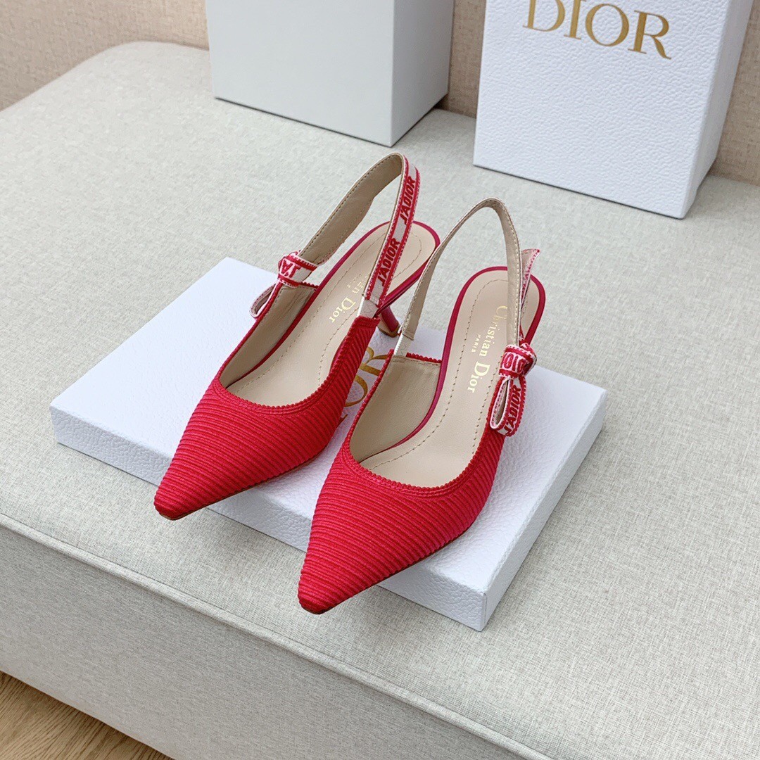 Dior J’Adior Slingback Pumps 65mm In Rose Red Cotton Embroidery